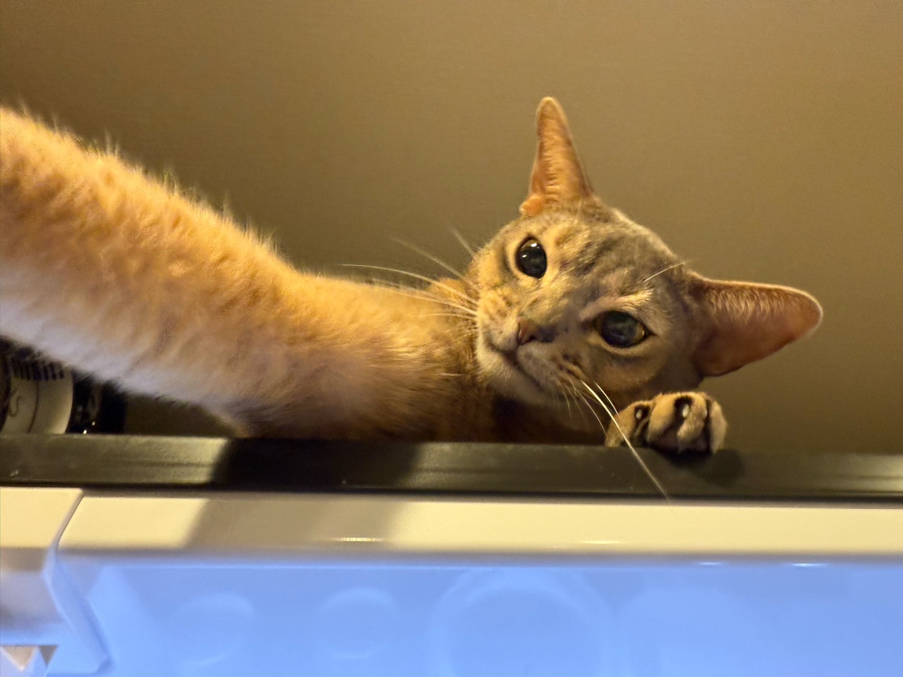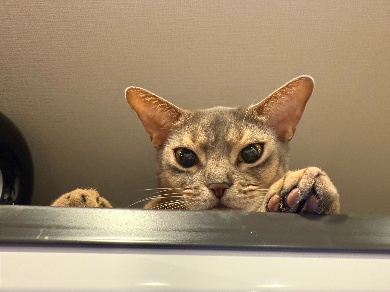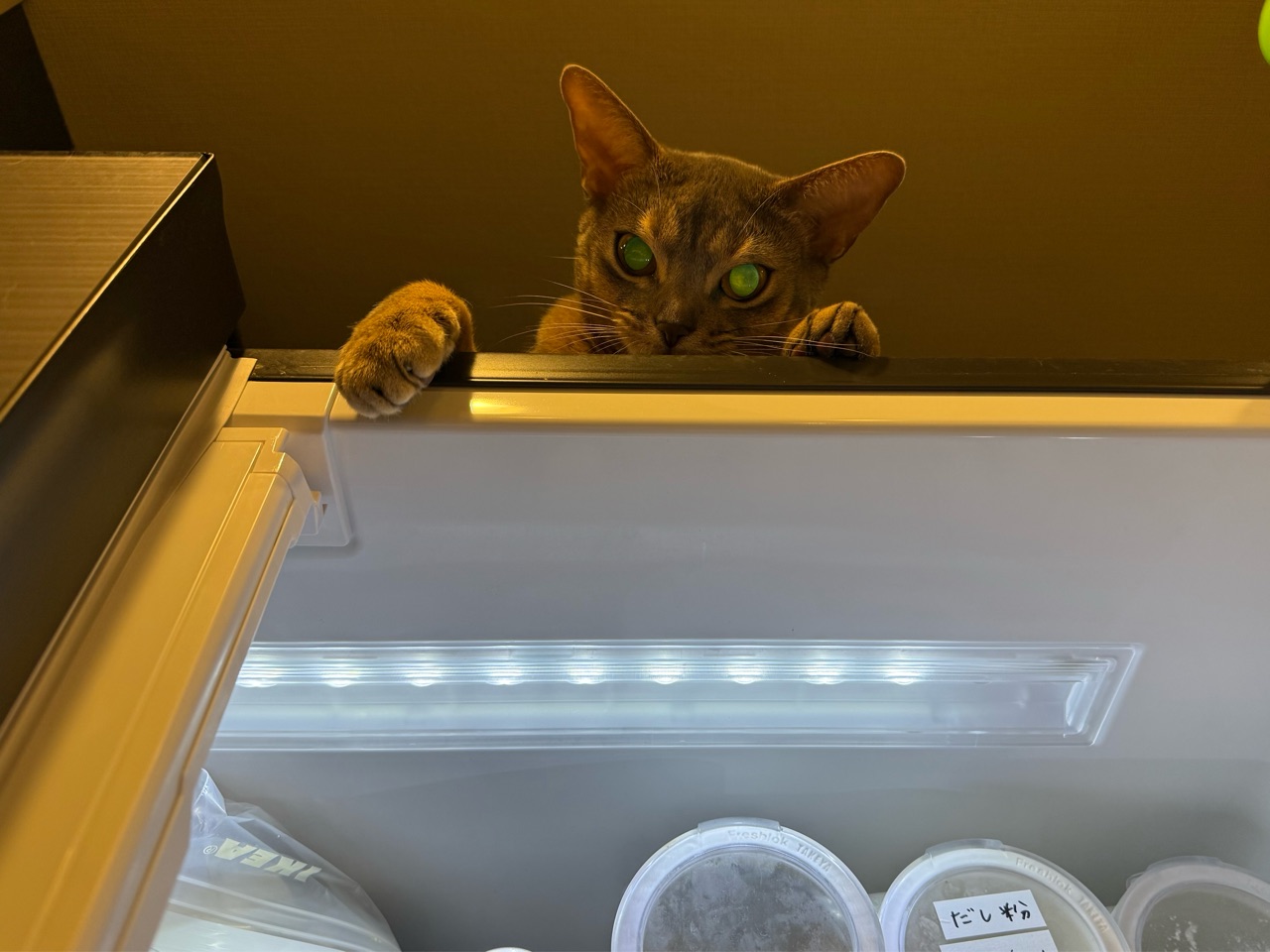 2025年10月27日 冷蔵庫の上の棚、取り出せない時がある ご訪問ありがとうございます。joli!joli!(じょりじょり)と言います このブログは、飼い猫のアビシニアンのことや毎日のおうちごはん、おでかけ記録や美味しいお店のことなどを書いています。日常に、ちょっぴりの癒しや、ちょっぴりの潤いになれば嬉しいです♪冷蔵庫の上の棚にある物を取り出そうと扉を開けると、番人がいた…わか坊が冷蔵庫上でくつろぎ中、冷蔵庫の扉を開けると目がピカる時がある。遊びたいマンの時の顔をしている。これは、ややこしいやつです( ¯ᒡ̱¯ )こっちの動きを監視して、手を伸ばすと、攻撃してくる。わか坊が冷蔵庫の上で遊びたいマンになる時、冷蔵庫の上の棚の物を取り出すのがややこしくなるわが家です。大人猫さんになっても、ぜんぜん落ち着かない(๑¯◡¯๑)わか坊が、落ち着く日は来ますかね( ꒪ͧ-꒪ͧ)\15歳くらいになったら落ち着くかしらねぇ/\ちび子は12歳くらいで落ち着いたもん/インスタグラムもぼちぼちやってます ↓ 楽天のROOMにお気に入りのものや常備品など載せてますこちらからは、レシピのみ閲覧できます見たい分類のアイコンをポチッとしてください♪ 「├ わか男」カテゴリの最新記事 < 前の記事次の記事 > コメント コメント一覧 (2) 1. ビビアン 2025年10月28日 08:10 わかちゃんがワクワクしてる時のお顔は完全に子猫ちゃんですよね~🥰 ずっと落ち着かなくていい😆!と思うけど、落ち着くとお兄にゃん、お姉にゃん達とくっついたりできるのかな?? いやいや、でもわかちゃんは永遠子猫ちゃんで良いですね😘 0 jolijolidayo がしました 2. joli!joli! 2025年10月28日 13:07 >>1 いつも子猫の顔で遊びに誘って来ますー😍 ほんと、いつまでも子猫ちゃんみたいでいて欲しい気持ちと、他の子たちに嫌われないくらいに落ち着いて欲しい気持ちでせめぎ合ってます(๑¯◡¯๑) 0 jolijolidayo がしました コメントフォーム 名前 コメント 記事の評価 リセット リセット 顔 星 情報を記憶 コメントを投稿する