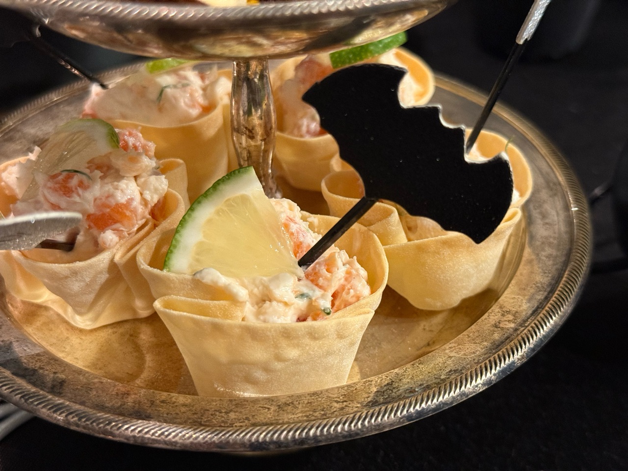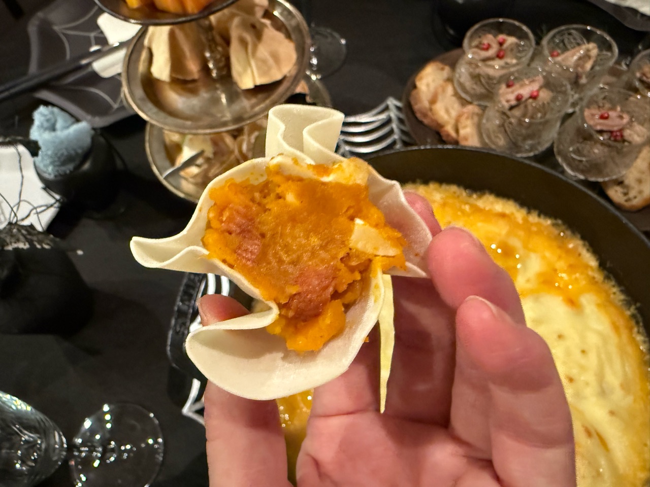 餃子の皮で作ったカップに入れた、クリームチーズ&サーモン。