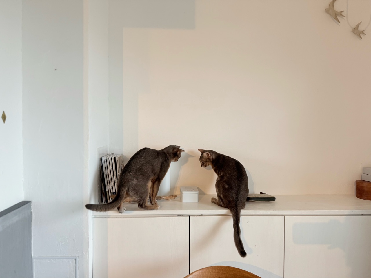 と、背中を並べて探しているグレー兄弟がかわいい(*´ω`*)
