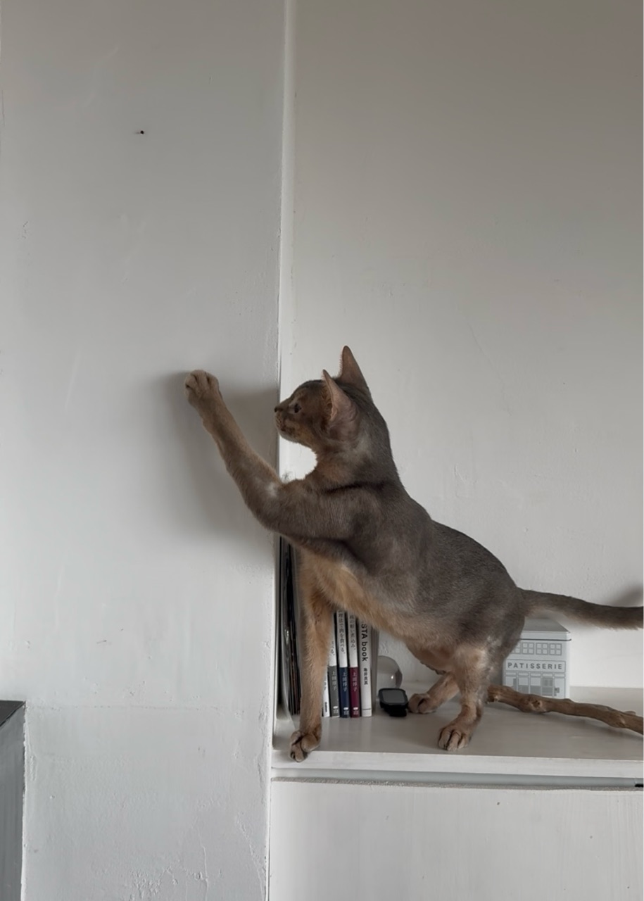 ぼくちんが、熱心に壁をさぐっている。