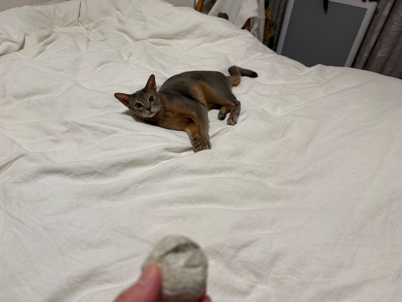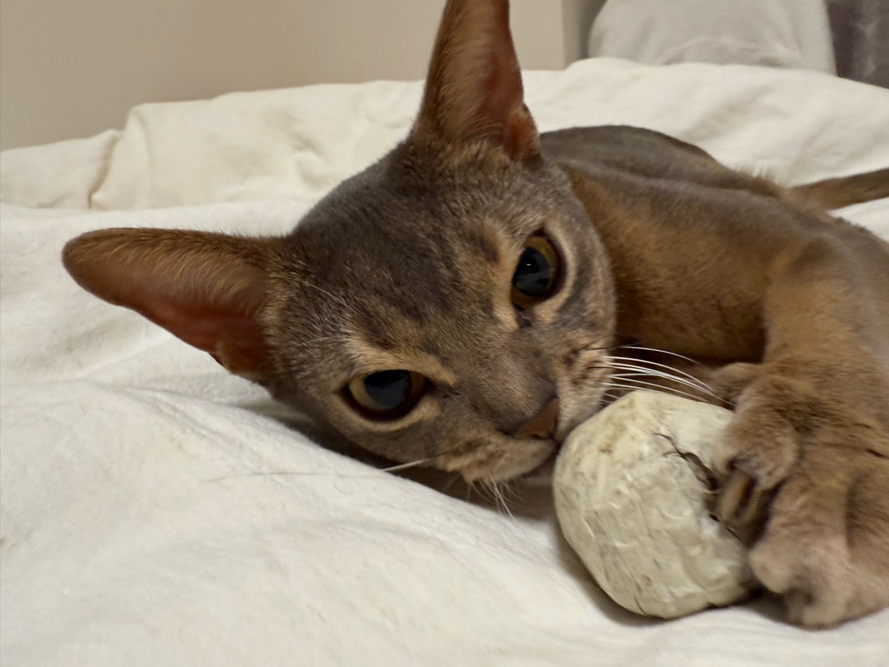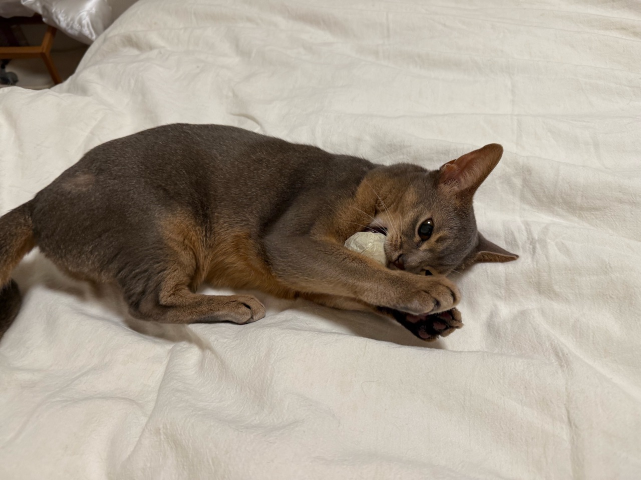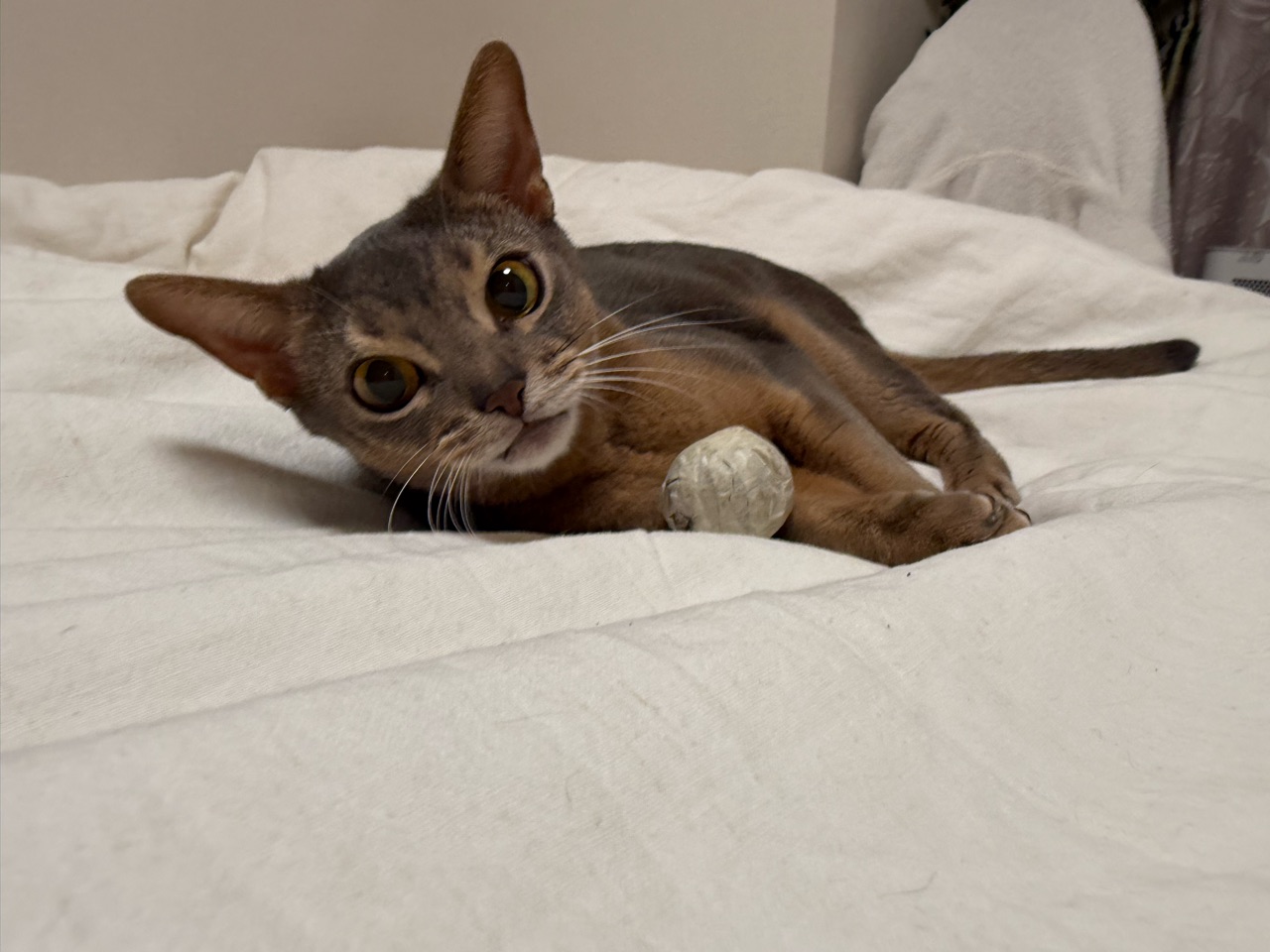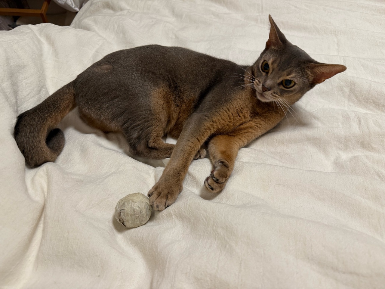 2025年11月06日 ボール遊びで荒ぶるわか坊 ご訪問ありがとうございます。joli!joli!(じょりじょり)と言います このブログは、飼い猫のアビシニアンのことや毎日のおうちごはん、おでかけ記録や美味しいお店のことなどを書いています。日常に、ちょっぴりの癒しや、ちょっぴりの潤いになれば嬉しいです♪最近、わか坊が気に入ってる遊び。紙を丸めてマスキングテープをぐるぐるしたボールで遊ぶ。投げたボールを、キャッチ。しばし戯れて、大事そうに抱えてた(๑¯◡¯๑)おや?ボールどこ行ったのかな⁇お腹の下にあった。\おまい、そこにいたのかよ!/立ち上がった時にお腹の下に転がって行ったね。ボールがお腹の下にあるのとかって案外気づかないんですよね。動き出して、何かある!って気づくとすごい勢いでガブガブ蹴り蹴りしてます(๑¯◡¯๑)すごい噛んでるな…勢いよく噛んでると思いきや、すっと、あっちへやって。やっぱり引き寄せる。謎の遊びに興じるわか坊でちた(๑¯◡¯๑)\おりのボール✨/\ボール飛んでくると頭で受けちゃう/\ちび子はすごく速く飛んでくるボールも叩けるもん/ インスタグラムもぼちぼちやってます ↓ 楽天のROOMにお気に入りのものや常備品など載せてますこちらからは、レシピのみ閲覧できます見たい分類のアイコンをポチッとしてください♪ 「├ わか男」カテゴリの最新記事 < 前の記事次の記事 > コメント コメント一覧 (4) 1. コマさん。 2025年11月06日 09:43 こんにちは。 お天気悪いですね。 雨が降らない分には嬉しいですが…。 遠くから見ると、おとなびた わかぼっちゃんに見えましたが、 おもちゃを差し出すとおこちゃまに 変身したようで、とても可愛い❤️❤️❤️ おにぃさんのぼくちんと一緒に といいたいところですが…。 おにぃさんは違うところで休んで いるんでしょうかね。 0 jolijolidayo がしました 3. joli!joli! 2025年11月07日 10:26 >>1 11月になっても、お天気が落ち着かないですねー。 わか坊、大人の雰囲気になむってきたようで、まだまだ子猫ちゃんみたいなところがあります(*´ω`*) かわいいですー。 時々、お兄ちゃんとおもちゃを取り合ってますよ🤣 0 jolijolidayo がしました 2. キジトラ 2025年11月06日 12:20 じょりじょりさん、こんにちは☀️ わかちゃん、ボール遊びがブームなんですね⚽️ 一生懸命ガブガブしている姿、可愛いです☺️ ボール見失うの、うちの子もよくやります! すぐ側にあるのに、なかなか気づかないんですよね。 うちは私がボールを投げ直してあげてます😁 わかちゃんの遊び方がうちの子とそっくりで、いつもほっこりさせてもらっています💖 今度私も、紙を丸めてぐるぐるしたもの、作ってみたいと思います✨️ 0 jolijolidayo がしました 4. joli!joli! 2025年11月07日 10:27 >>2 ボール遊び好きですよね♪ ボール気づかないとか、かわいくて笑っちゃいますよね😂 ガブガブして遊ぶのはわか坊だけなんですが、猫にも個性がありますねー。 0 jolijolidayo がしました コメントフォーム 名前 コメント 記事の評価 リセット リセット 顔 星 情報を記憶 コメントを投稿する