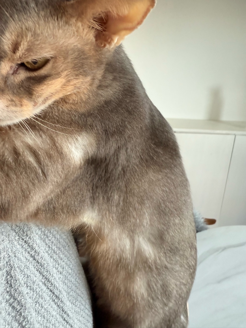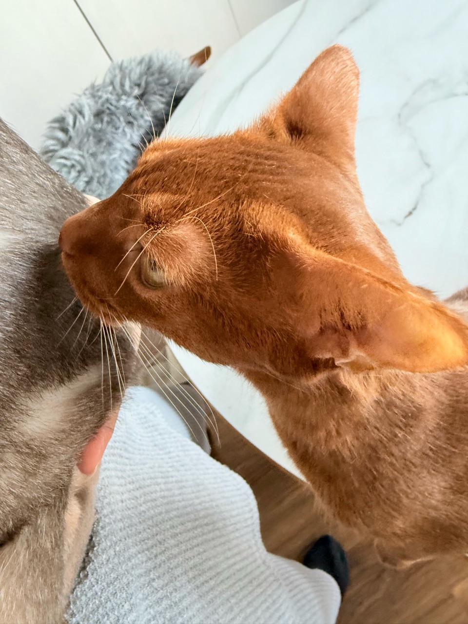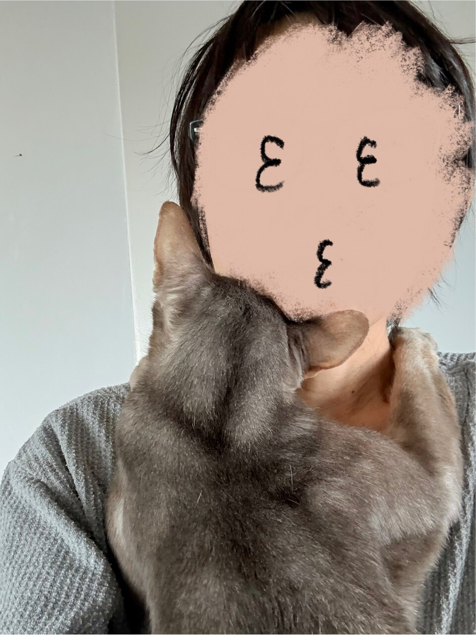 寝起きの腫れぼったい顔と、ボサボサ頭と、貼り付く猫。