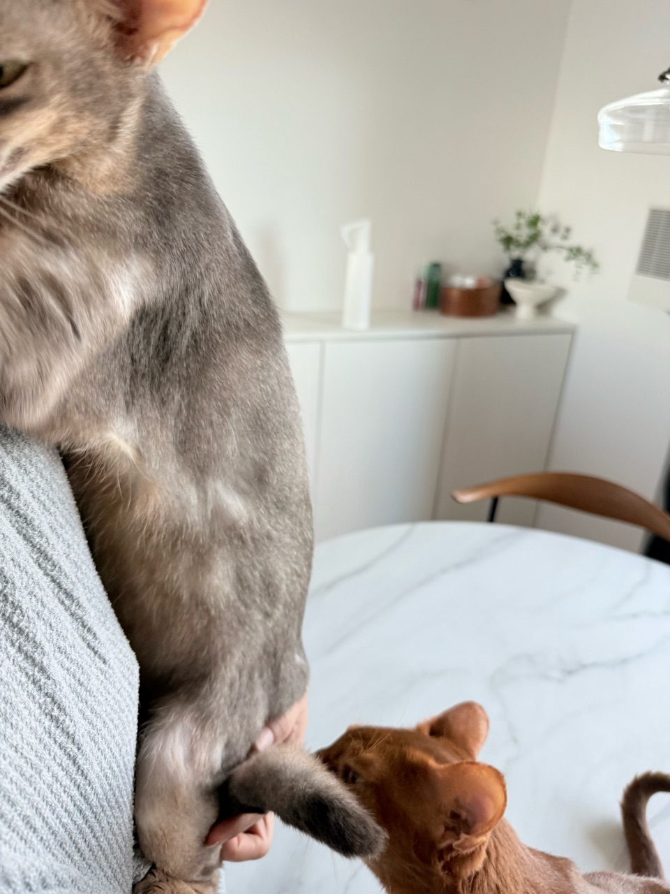 首にギューっとしがみついて、降ろそうとしても降りてくれない。