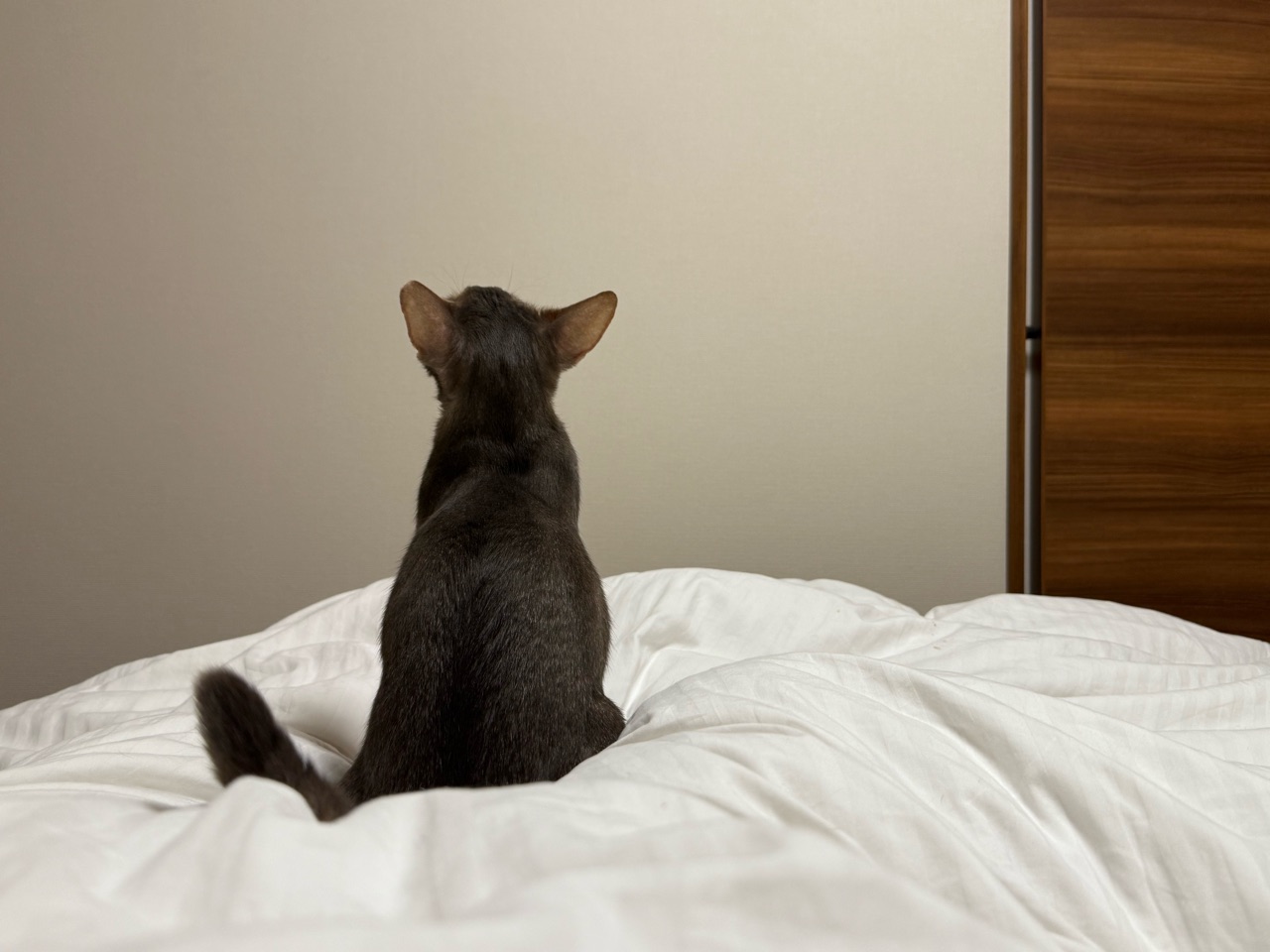 夜、飼い主がお布団に入るのを見計らって一緒に寝ようとやってくるんです。
