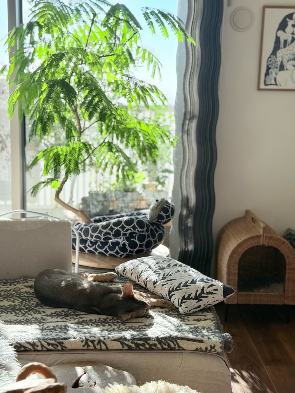 窓側に置いたエバーフレッシュの影がキラキラとして、ぼくちんに落ちてたんだ。
