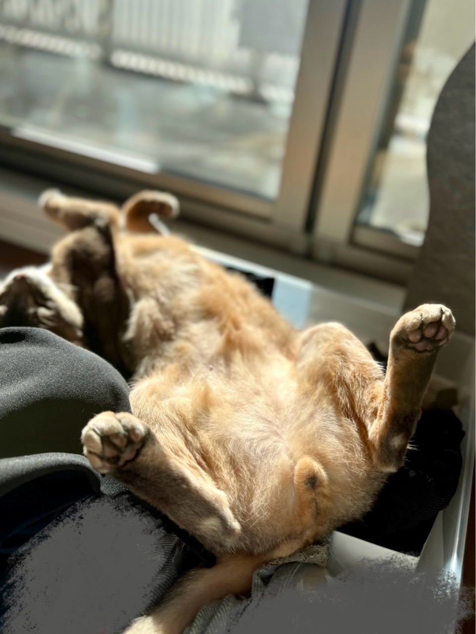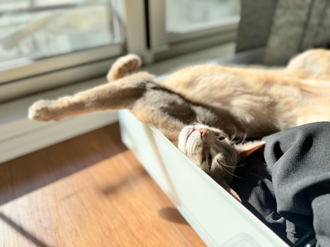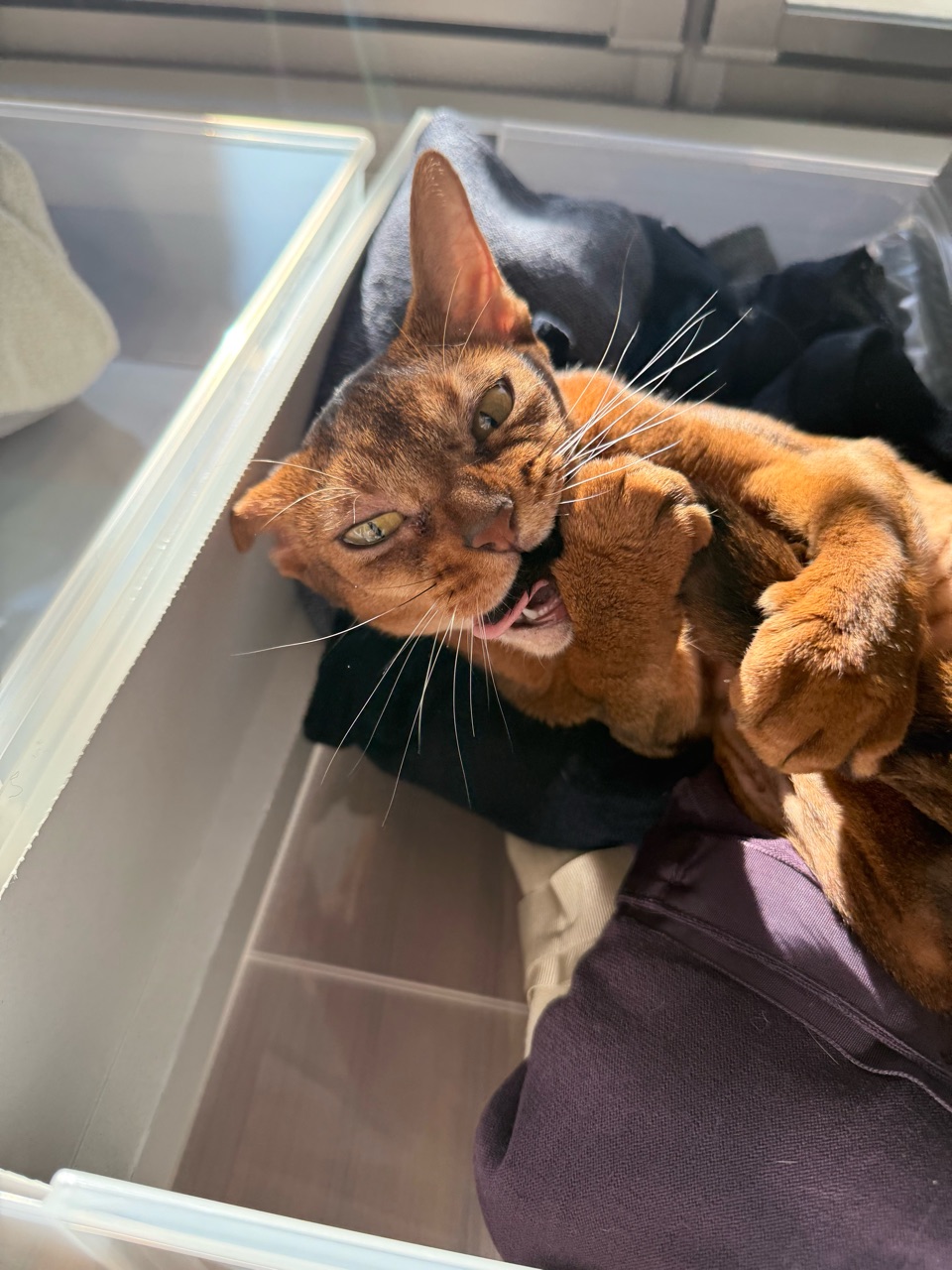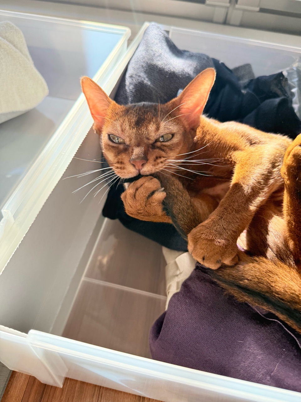 ぼくちんは、衣替え途中の引き出しで寝てるし。