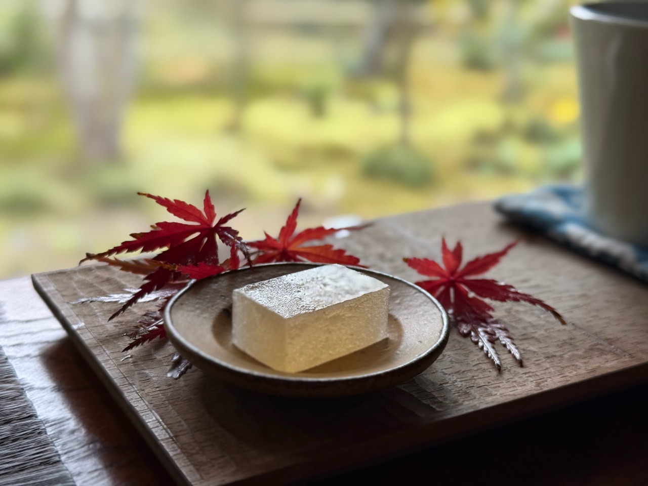紅葉と一緒に、琥珀糖が添えられていました。