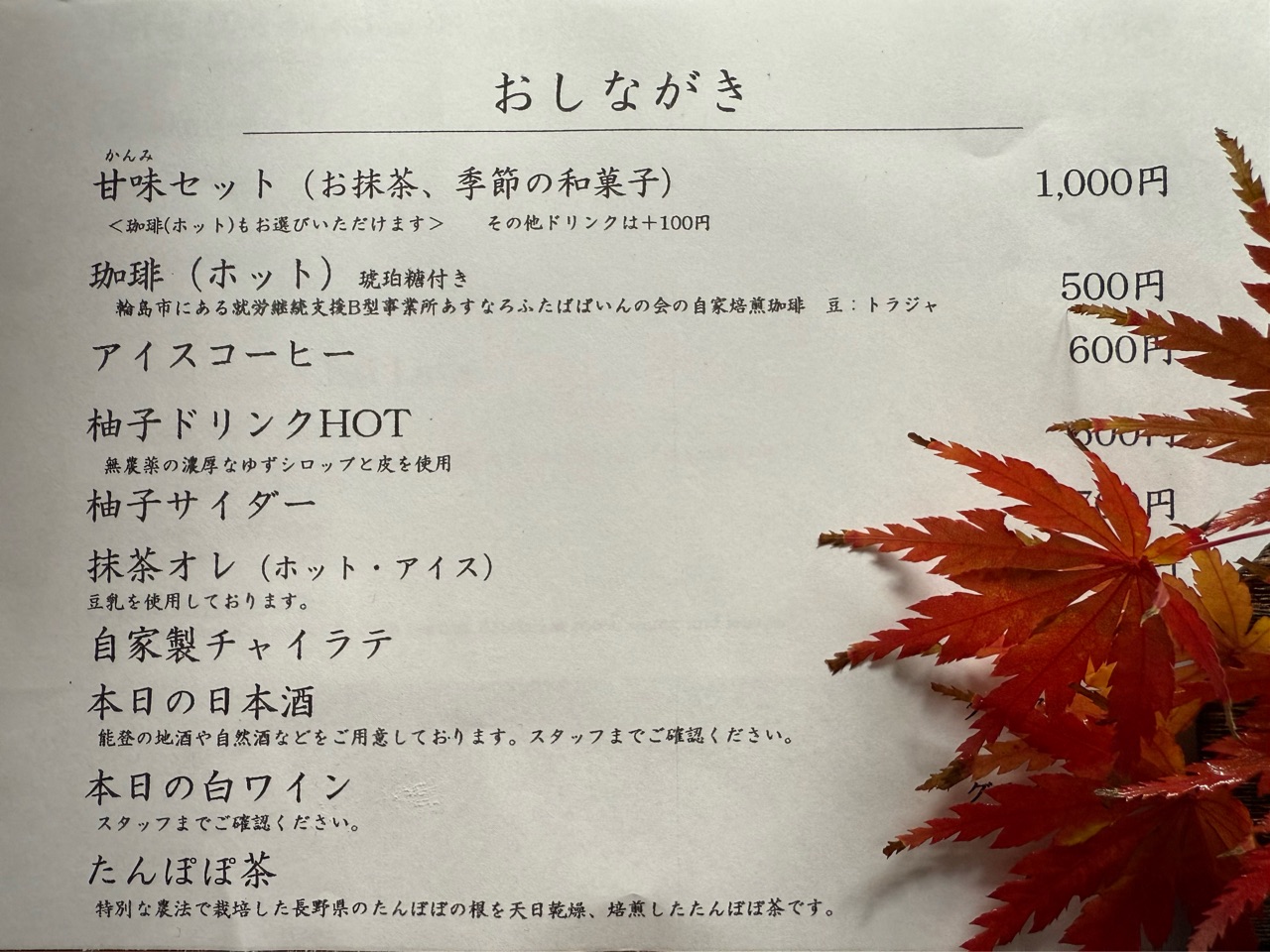 と中を覗くと、何やらメニューがあります。