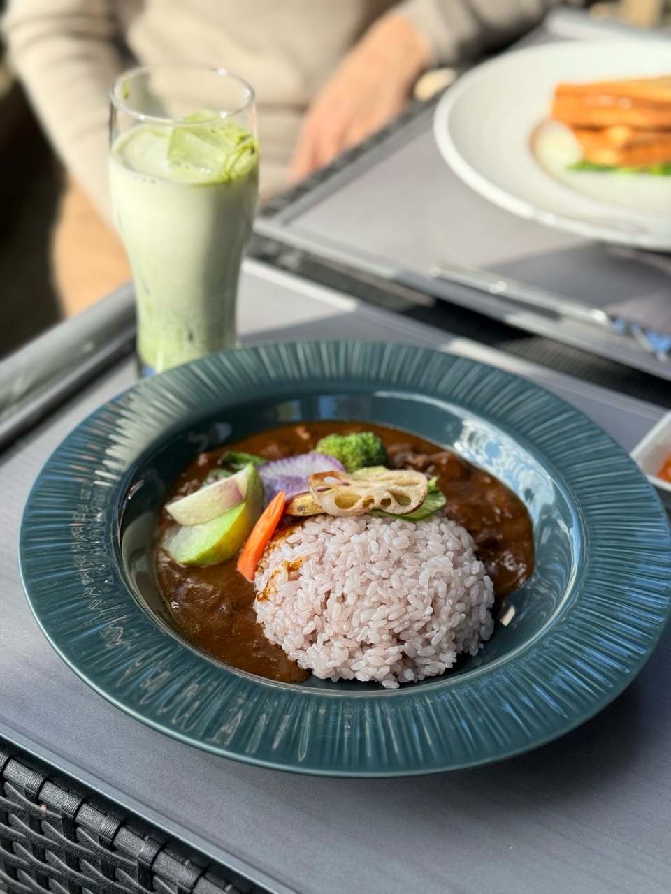 レストランで使用される牛ヒレ肉とえごま豚が入ったカレーに、グリルされた鎌倉野菜がたくさん乗ってました。