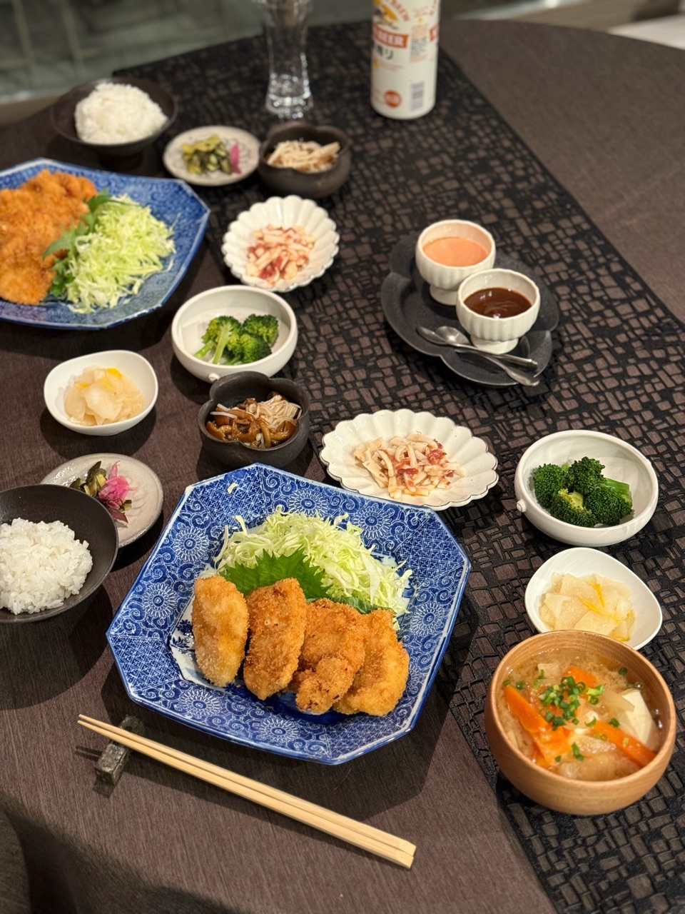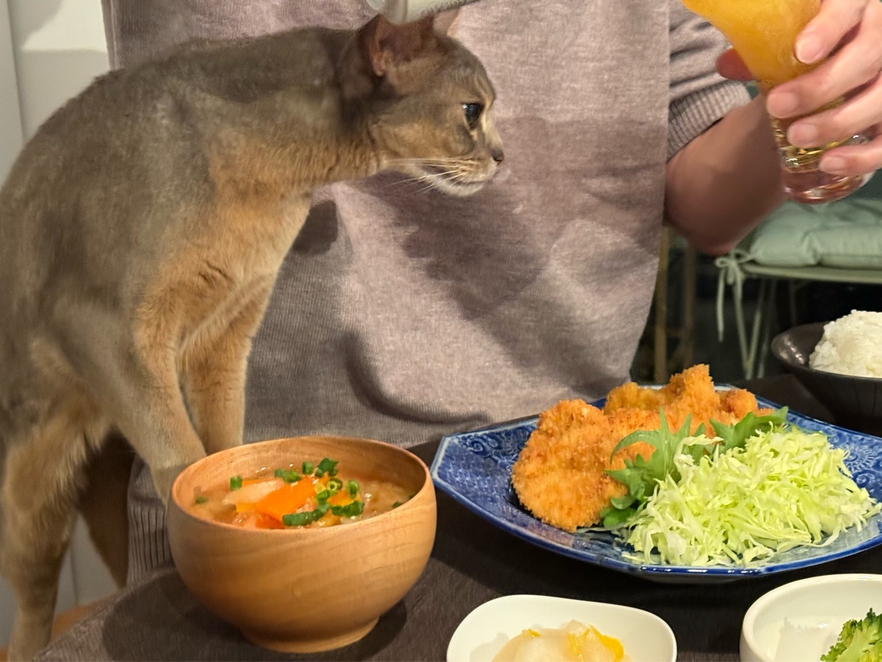 2025年12月03日 【だんなさまごはん】チキンカツ定食の夜ごはん 先日の夜ごはんです。この日はだんなさまが、鶏むね肉を使ったチキンカツを作ってくれました。薄切りにしてもらって食べやすかった✨オーロラソースとカレー風味のケチャップソースを用意しました。サクサクの衣とソースが相まって美味しかったー✨揚げ物を面倒がらずに作ってくれて助かります。なめこエノキおろし。だし醤油でいただきました。寒くなると、大根美味しいですね✨山芋の梅肉和え焼きブロッコリーゆずの酢漬け具沢山お豆腐たっぷりのお味噌汁チキンカツも副菜も美味しくて、ご飯が進みまくりました(〃ω〃)わか坊が、慌てた様子でやって来た。パパの椅子に飛び乗りチキンカツ物色してた。とにかく、食卓が好き(๑¯◡¯๑) 「├ だんなさまごはん」カテゴリの最新記事 < 前の記事次の記事 > コメント コメント一覧 (4) 1. コマさん。 2025年12月03日 21:05 こんばんは。 昨日はライブドアのメンテナンスで あまり、いつも来るブログが 見られかったのが多かったよう ですね。 旦那さま、手作りのお料理ですね。 たくさんの野菜にきのこにお肉。 これが良いみたいてすね。 きのこは、免疫を強くする作用が あります。医者も太鼓判のきのこ活 が良いと言ってます。 今日は、寒くて…。白菜鍋にしました。 もちろんしいたけを入れまして…。 0 jolijolidayo がしました 3. joli!joli! 2025年12月04日 17:45 >>1 ライブドアのメンテナンスだったんですね。 エラーが出てはい」なくめ、どうしてかなー?と思ってましたー。 キノコら免疫を強くするんですね✨ そういえば、ひな子のリンパ腫の時のさぷひも、マイタケのエキスでした。 寒くて免疫力も下がりそうだから、きのこたくさん摂りたいですね✨ 0 jolijolidayo がしました 2. ビビアン 2025年12月04日 08:26 揚げ物めんどくさがらず作ってくれるのスゴイですね👍 揚げ物が美味しいお店の色してます😊鶏むね肉でヘルシーだし、副菜でお野菜いっぱいですね✨ わかちゃんの慌ててる様子が可愛い🥰 0 jolijolidayo がしました 4. joli!joli! 2025年12月04日 17:46 >>2 ほんとに、いつも感心します。 お料理の後、片付いてるし。 フライにするときは、もも肉よりも鶏むね肉の方があっさりとして美味しいですね✨ わか坊、慌てていて面白かったです🤣 0 jolijolidayo がしました コメントフォーム 名前 コメント 記事の評価 リセット リセット 顔 星 情報を記憶 コメントを投稿する