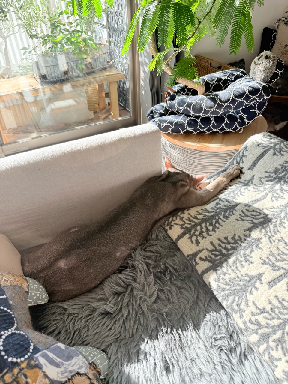 当にゃんは飼い主の心配をよそに、伸びーなんてしちゃって、