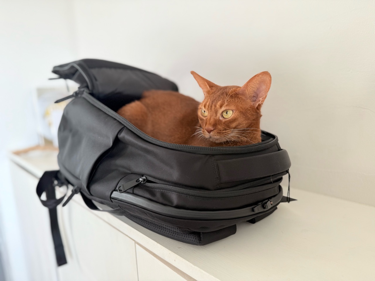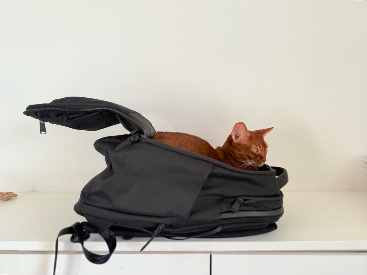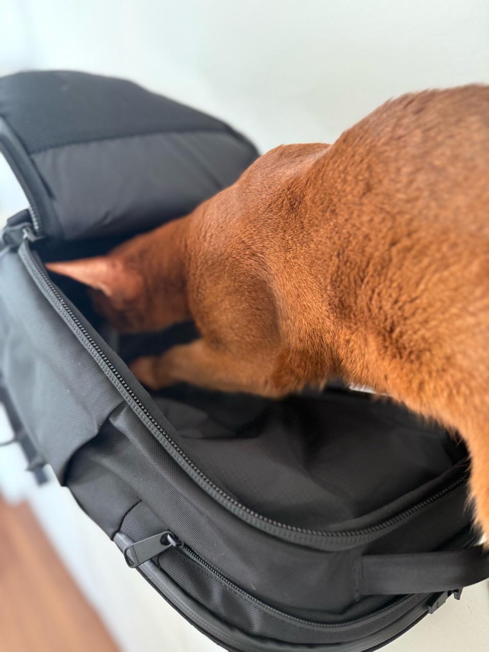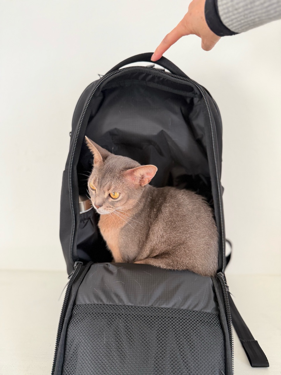 撮影中のバックパックに、入ってしまうひめちゃん。