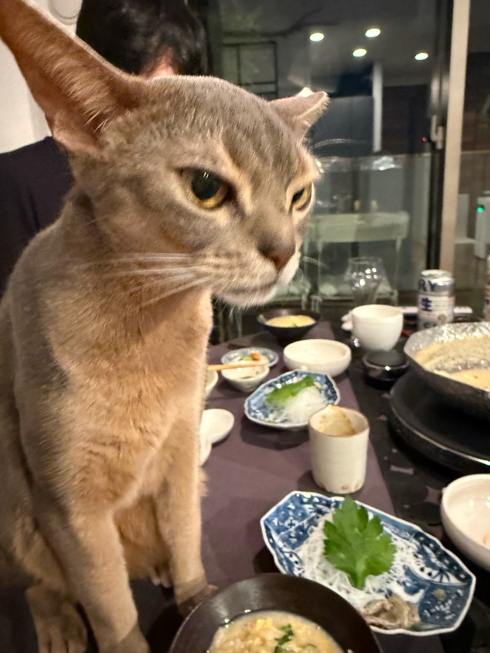 巡らせてテーブルを覗くんですね。