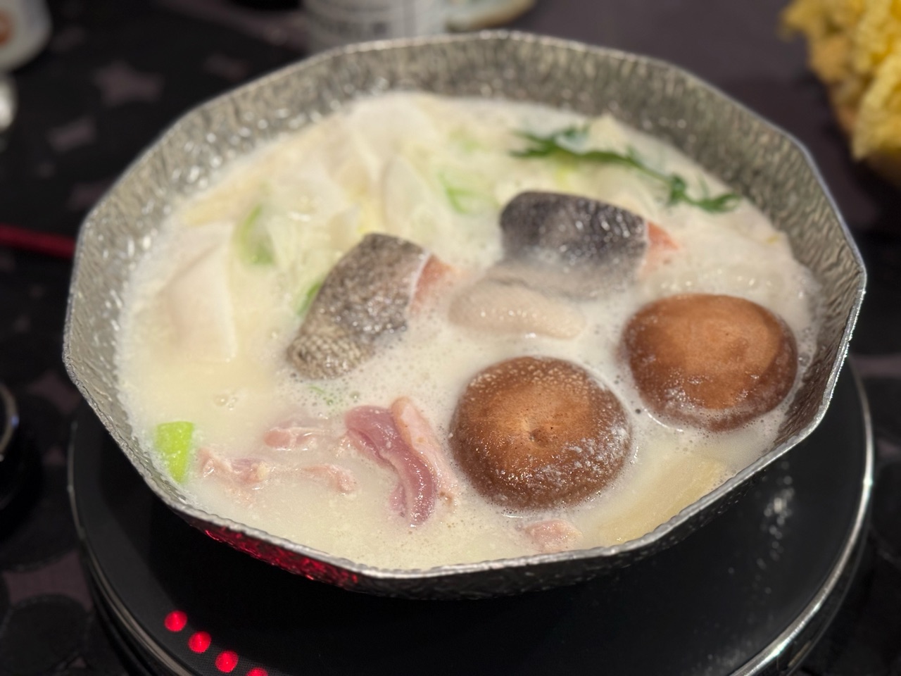 湯豆腐のあとは、お豆腐成分が溶け込んだ温泉水で豆乳鍋ができます。