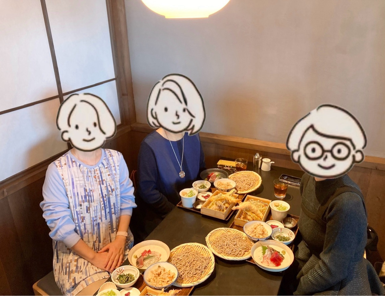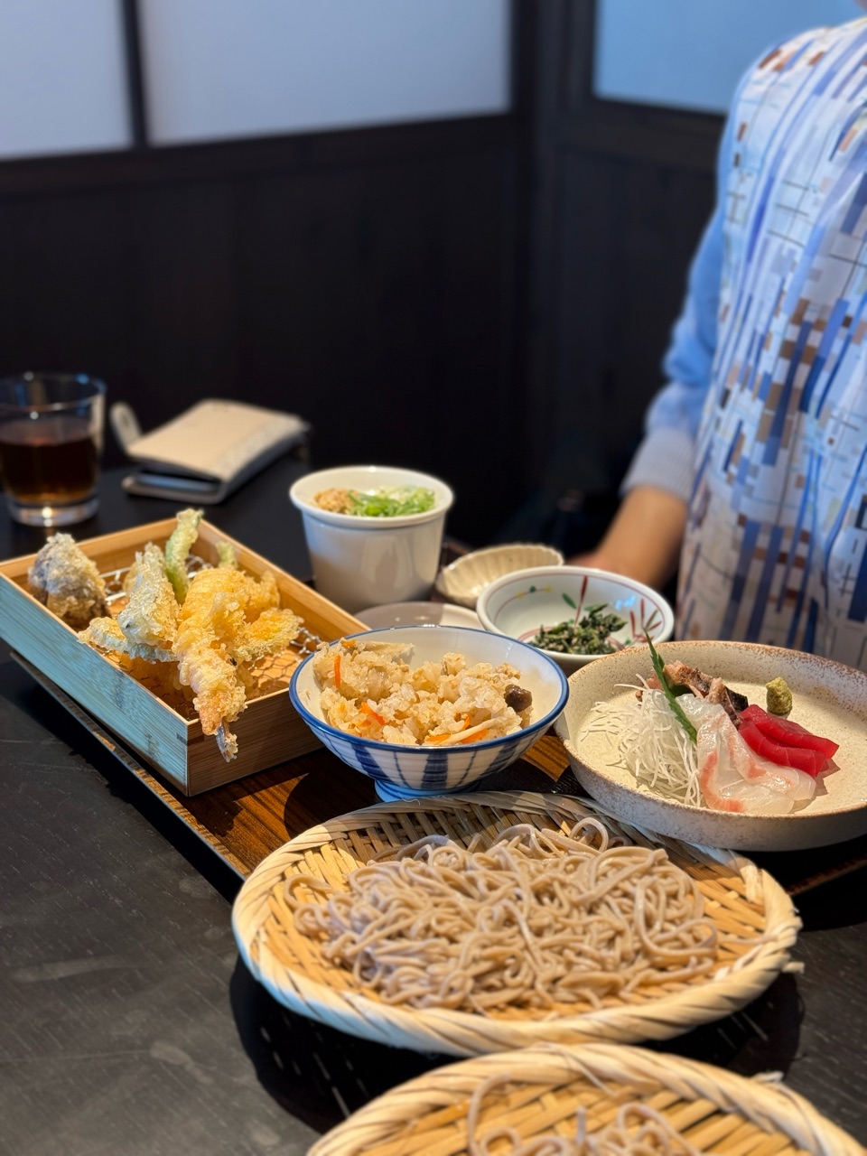 お刺身や天ぷらを食べてたら時間経っちゃったけど、お蕎麦美味しかった