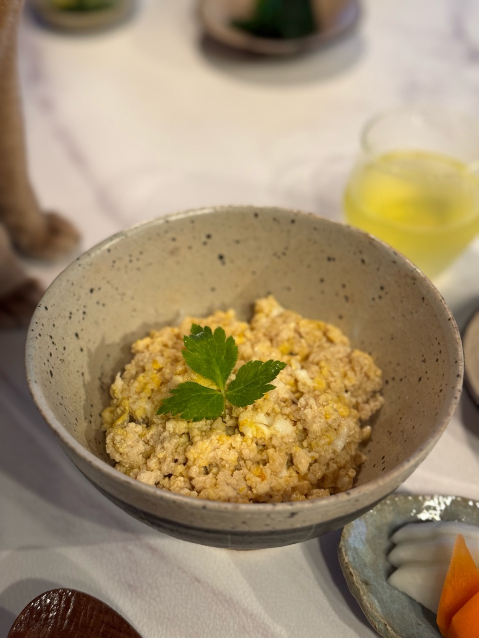 ひき肉を使った親子丼。
