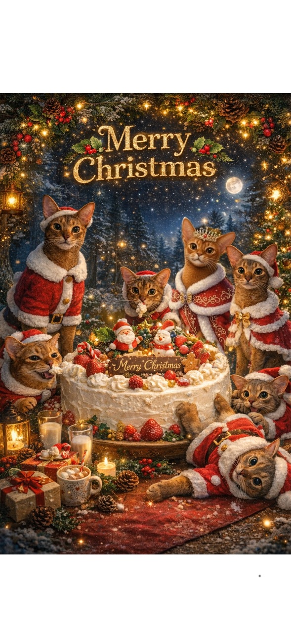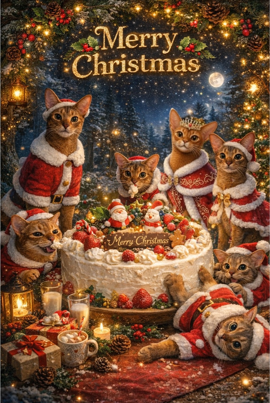 2025年12月24日 7ニャンから、メリークリスニャス⭐︎ 今日はクリスマスイブですね🎄皆さんどうお過ごしですか?あいにくのお天気だし寒いけど、体調に気をつけてくださいね。猫たちのクリスマスカードを生成AIで作ってみました。7にゃんから、メリークリスマス⭐︎どれが誰だか分かりますかー?夜に正解を発表しまーす♪携帯の待ち受けにする場合は、こちらの画像の方が使いやすいかも。それでは皆さま、素敵な一日を✩࿐ 「├ たまひなちび」カテゴリの最新記事 < 前の記事次の記事 > コメント コメント一覧 (6) 1. 杏 2025年12月24日 12:59 じょりじょりさん、こんにちは。 難しいですね。王冠はひめちゃん、手前寝そべってるのは、わかくん、帽子被ってるのがたま男くん、真ん中でクリーム食べているのがちび子ちゃん、左でクリーム食べているのがひなちゃん、ひめちゃんの右隣はりす子ちゃん、そうすると残るはとのくんがわかくんの右奥?なんか顔がとのくんじゃないな😅 0 jolijolidayo がしました 4. joli!joli! 2025年12月25日 13:16 >>1 これ原型が置き去りになって難しいですよね💦 飼い主でも、分からないと思いますー。 でも、女の子たち正解ですー! すごい👏 0 jolijolidayo がしました 2. ビビアン 2025年12月24日 15:20 ほんと意外にムズカしいですね😂👍 私は左から、わかちゃん・たま男さん・ちび子ちゃん・ひめちゃん・ぼくちん・りすたん・ひなちゃん、にしてみます😚 0 jolijolidayo がしました 5. joli!joli! 2025年12月25日 13:17 >>2 でふわねー! 飼い主でも、自分で作ってなければ分からないと思います💦 けど、たまちびひめ子、当たってますね! 0 jolijolidayo がしました 3. みー 2025年12月24日 17:35 ほんと意外と難しいかも😓あたしは左からひなちゃんたま男くんちび子ちゃん、王冠がひめちゃんぼくちん、りすちゃんわかくん!にしてみます^ ^ 0 jolijolidayo がしました 6. joli!joli! 2025年12月25日 13:18 >>3 すごい! ひな子、たま、ちび子、ひめ子合ってますー👏 飼い主が見ても、とのの顔がわか坊に見えて混乱します😂 0 jolijolidayo がしました コメントフォーム 名前 コメント 記事の評価 リセット リセット 顔 星 情報を記憶 コメントを投稿する