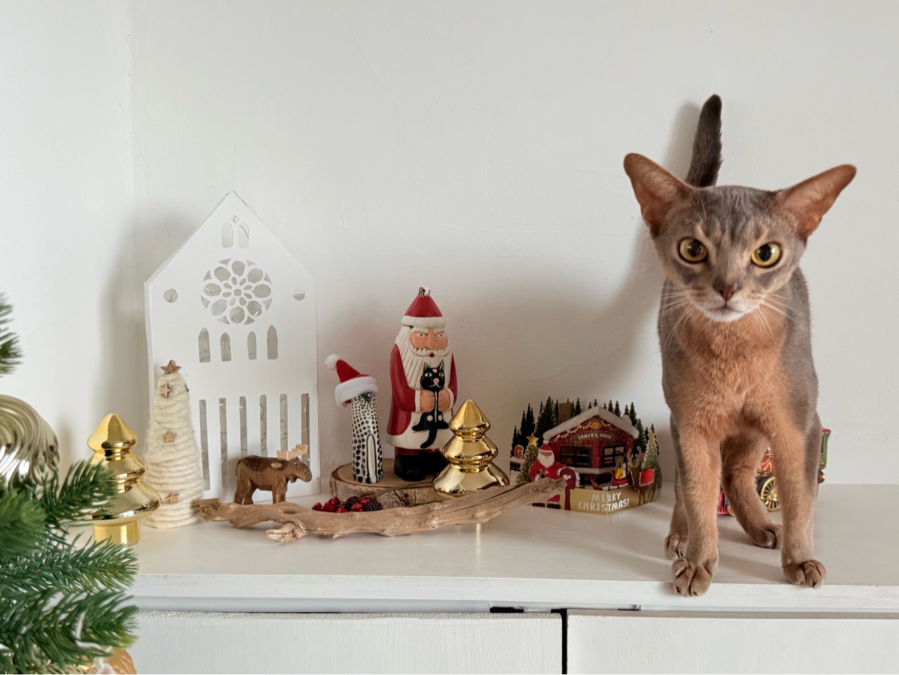 猫ちゃんを抱っこしてるサンタさん。