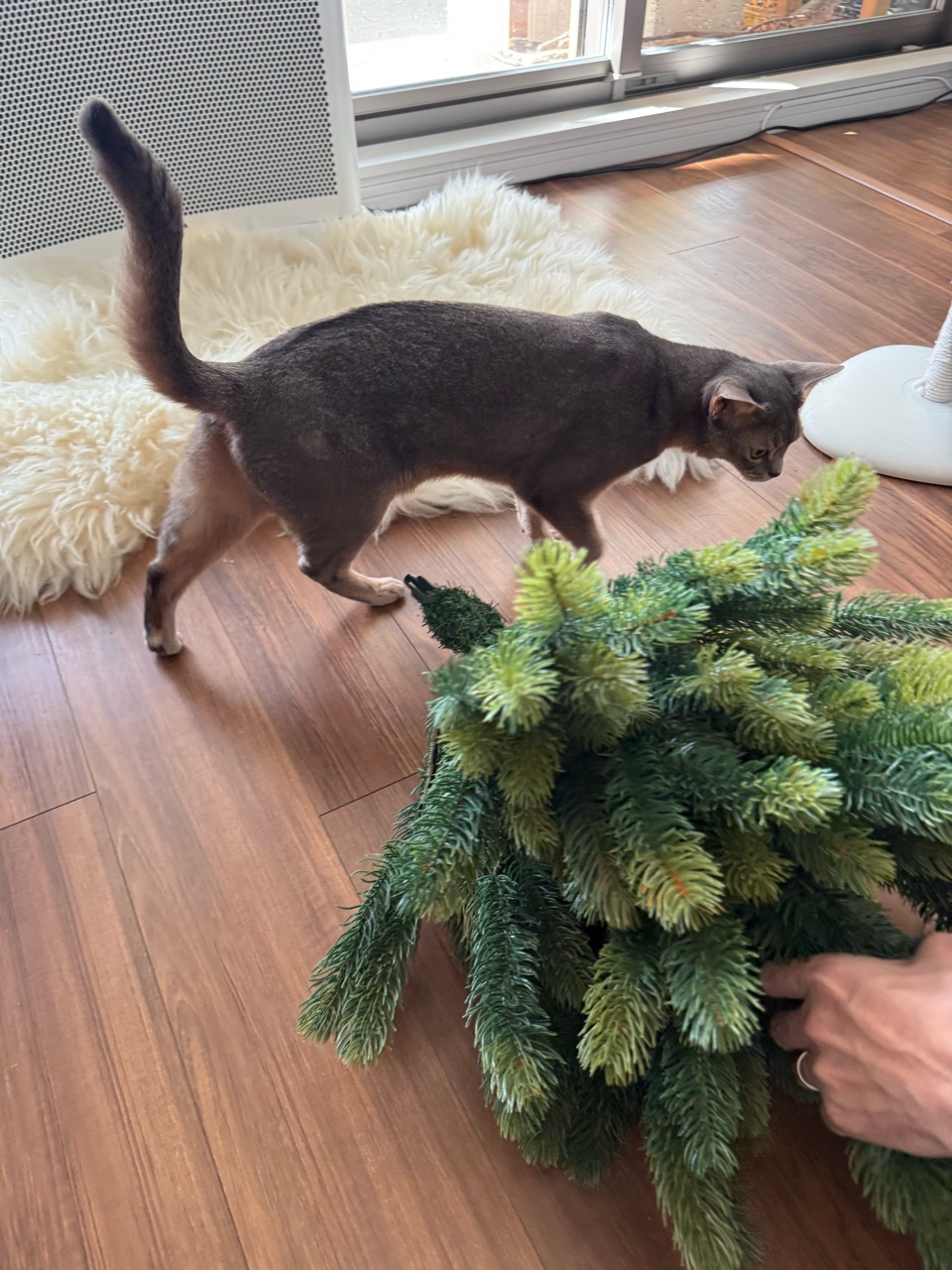 片付けたクリスマスツリーを運ぼうとする。