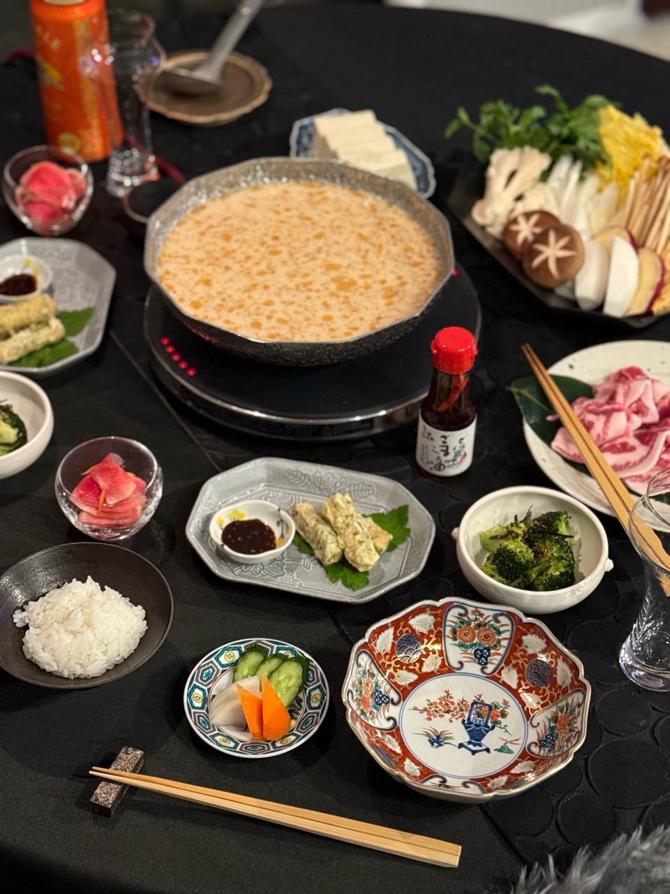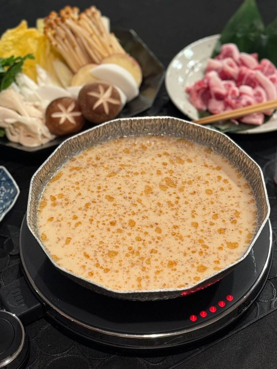 ゴマの風味たっぷりの豆乳鍋のスープに、