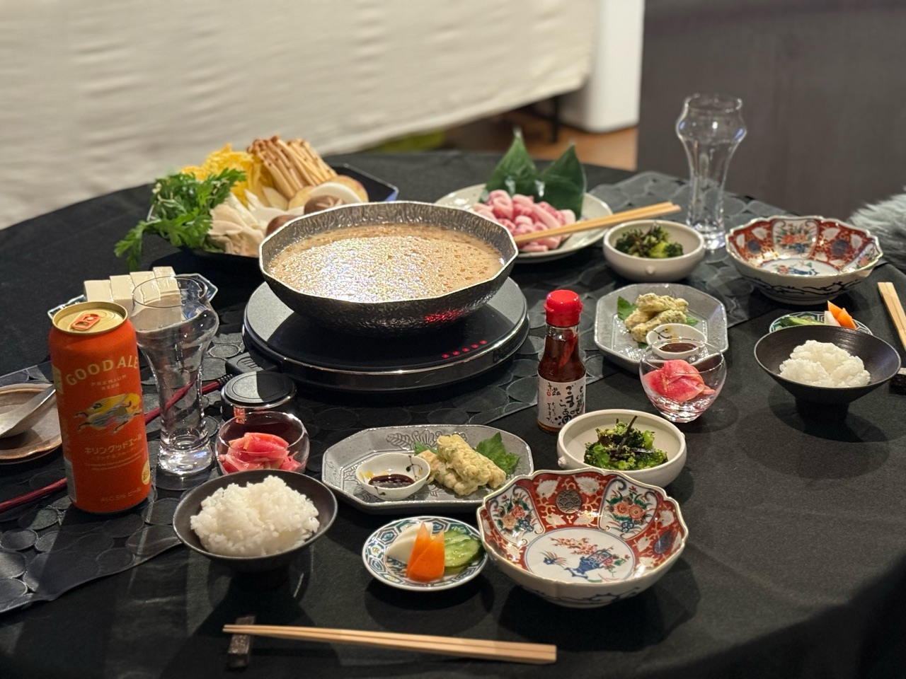 お鍋のつゆや副菜に、たっぷりと胡麻製品を使っています。