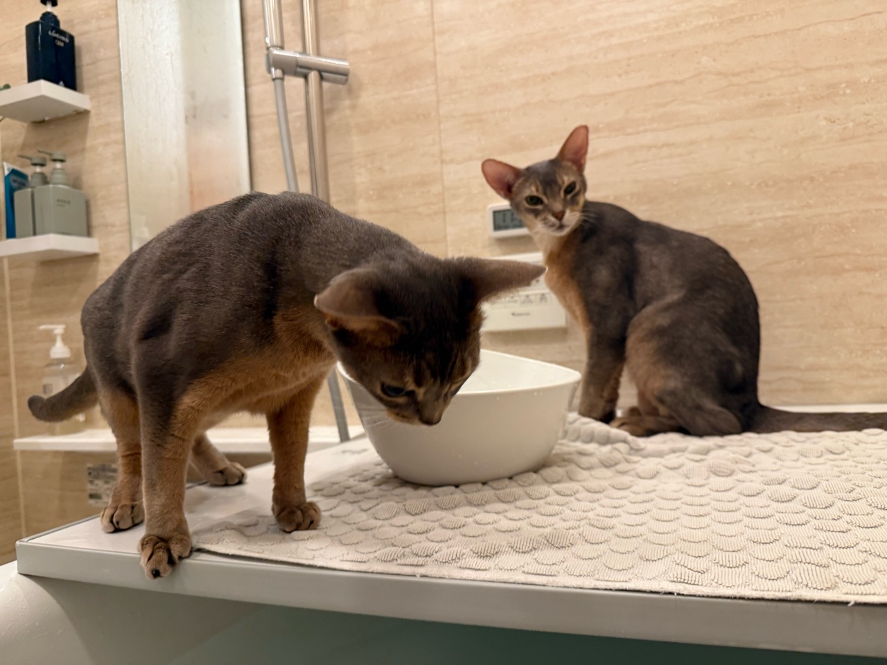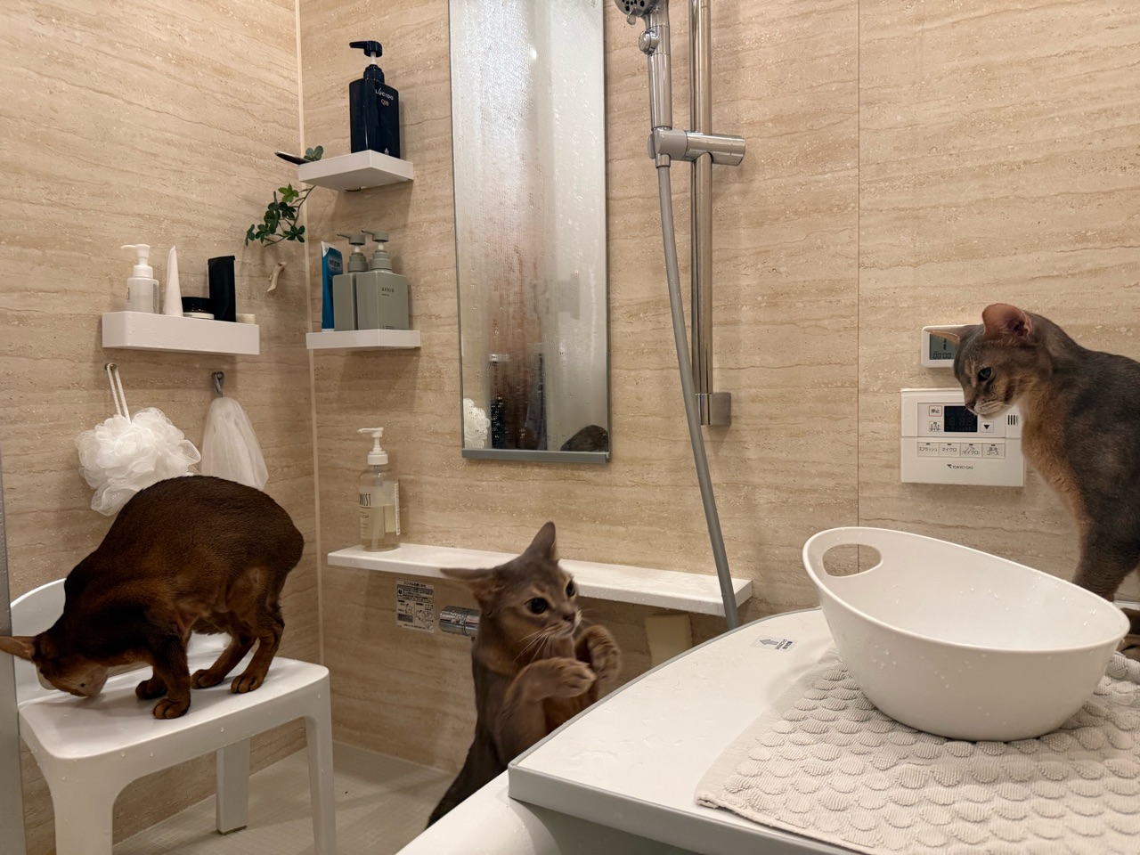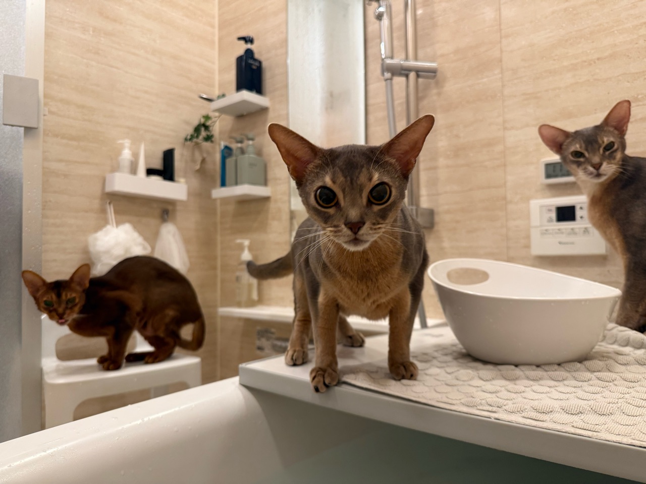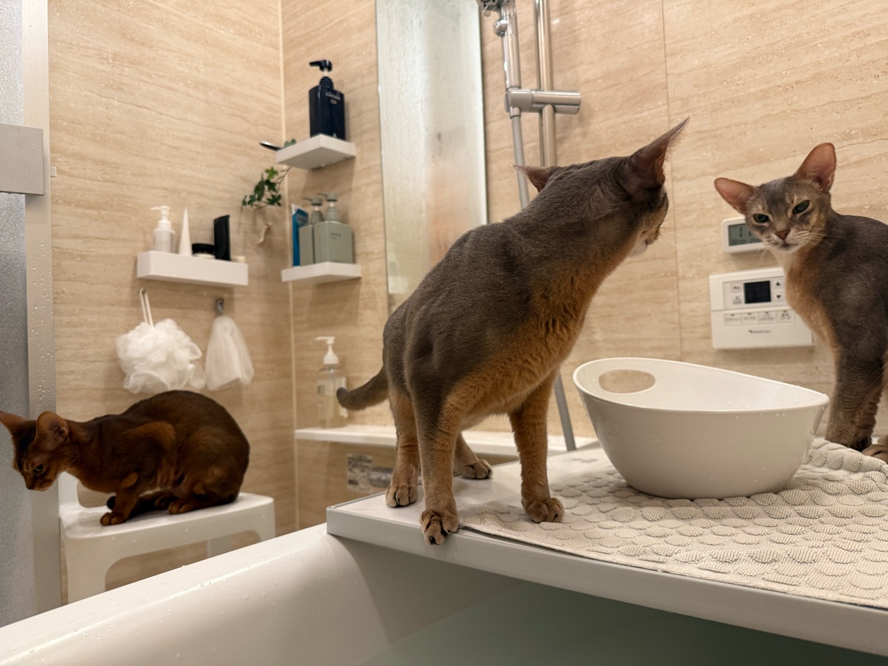 2025年12月28日 お風呂が渋滞 お風呂に入っていると、ぼくちんとりすが来て、そこへわか坊もやってきた。何故か、お風呂に猫たちが集合した。先に来ていたぼくちんは、わか坊が来て不満そう。仲良くしたら良いのにな。わか坊は、温泉のもとで白く濁ったお湯に興味津々である。けど、何かにビビった。何もないのに。あの日の宇宙人を思い出したのかな⁇わか坊は、ビビリンチョであります(*´ω`*) ドキドキしながらお風呂のヘリをつたって、飼い主の横に来た。わか坊は、飼い主が近くにいると安心するみたいで、怖いことがあると近寄ってくる。かわいい。\プッ!わかくんたら怖がりさんだね/\ぼくはお風呂なんてぜんぜん怖くないよ/そんなぼくちんも、怖いさんに怯えてた過去がある(๑¯◡¯๑) 似たもの兄弟だ。 「├ との男」カテゴリの最新記事 < 前の記事次の記事 > コメント コメント一覧 (4) 1. コマさん。 2025年12月28日 14:25 こんにちは。 大掃除は早めにやっておいたので お墓掃除もしてきました。 良いですねぇ〜。お風呂の中も 猫ちゃんワールドになってて、 一緒に楽しめるなんて味わって みたいものですね。 見るだけでも楽しみを味わえてる ようなところもあって、嬉しいで しょうね。 ちなみに、お風呂は、旦那さんの時にも みんな会いに行くんでしょうか? そしたら、旦那さんもお風呂の 楽しみ増えますよね。 0 jolijolidayo がしました 3. joli!joli! 2025年12月30日 21:49 >>1 コマさんこんばんは。 大掃除に、お墓掃除にお疲れ様でした。 気持ちよく信念を迎えられますね✨ お風呂タイムは、猫たちとの癒しの時間にもなりますー♡ だんなさまの時は、時々一緒に入ってますかま、基本的はわたしと一緒に入ることが多いです。 0 jolijolidayo がしました 2. ビビアン 2025年12月29日 06:59 あったかいお風呂に浸かりながら可愛い子ちゃん達に囲まれて、極上タイムですね~✨ みんにゃも湯気が気持ちいいのかな☺️?? 0 jolijolidayo がしました 4. joli!joli! 2025年12月30日 21:51 >>2 猫たちも、お風呂の湿気やホカホカを楽しんでるようですー♨️ そんな猫たちを見ながら癒されてます♡ ひなちゃんは、完全にミストサウナを楽しんでましたね😂 0 jolijolidayo がしました コメントフォーム 名前 コメント 記事の評価 リセット リセット 顔 星 情報を記憶 コメントを投稿する