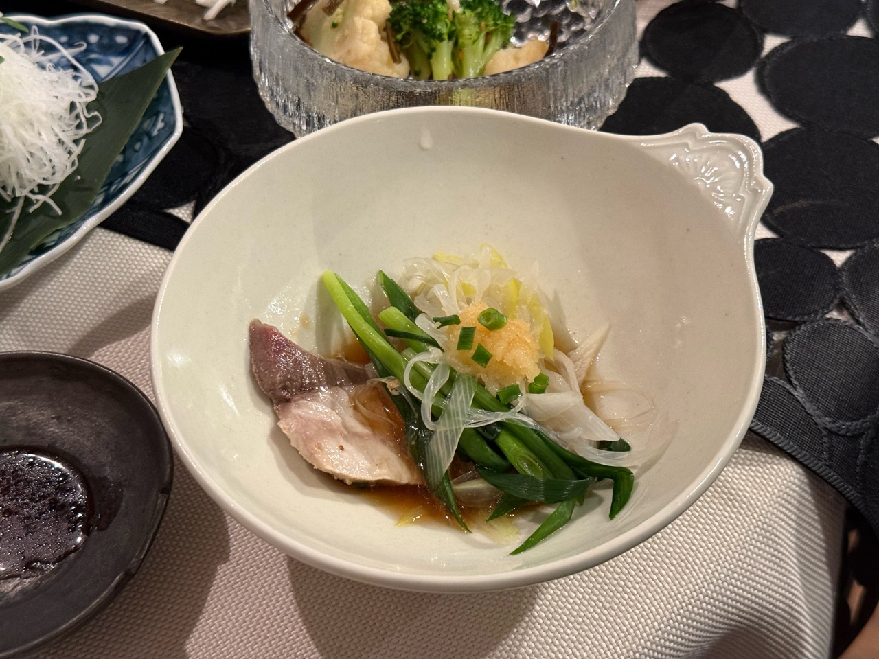 小ネギと白ネギを細切りにして、鰤と一緒にいただきました。