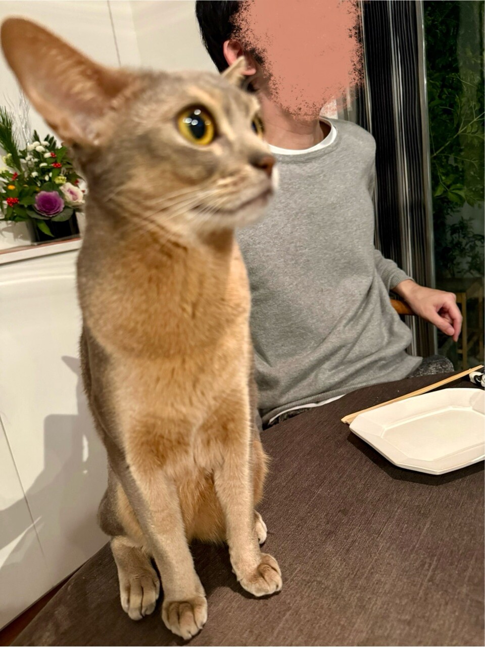 今日も、強い目をして食卓魔人をしていました。