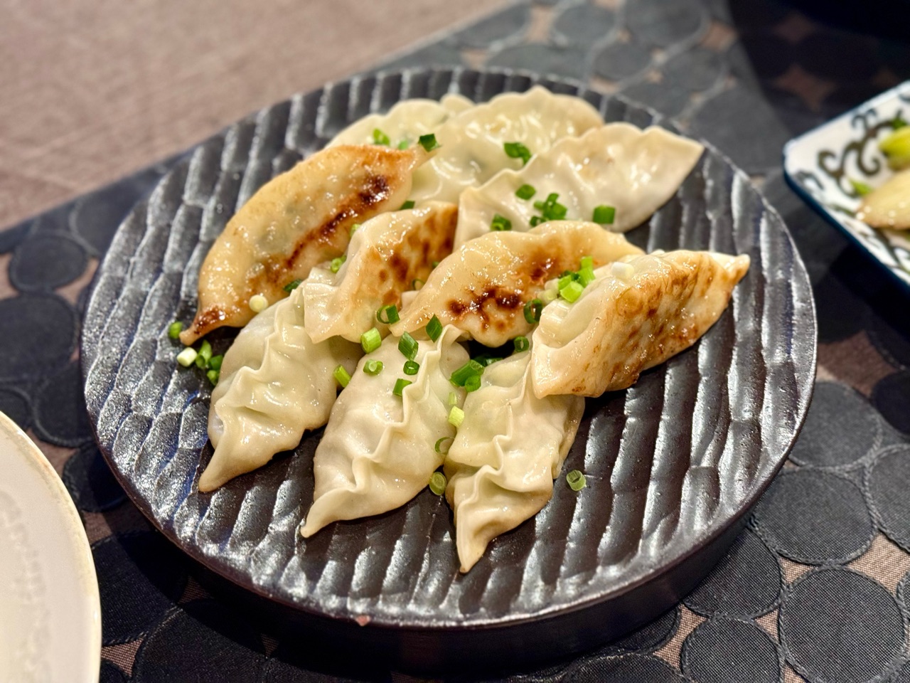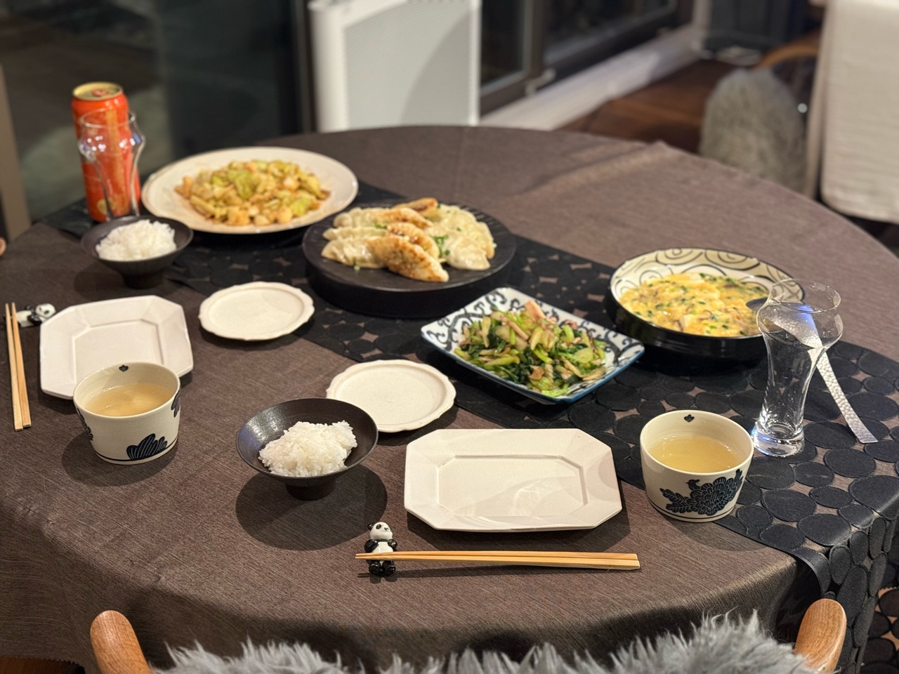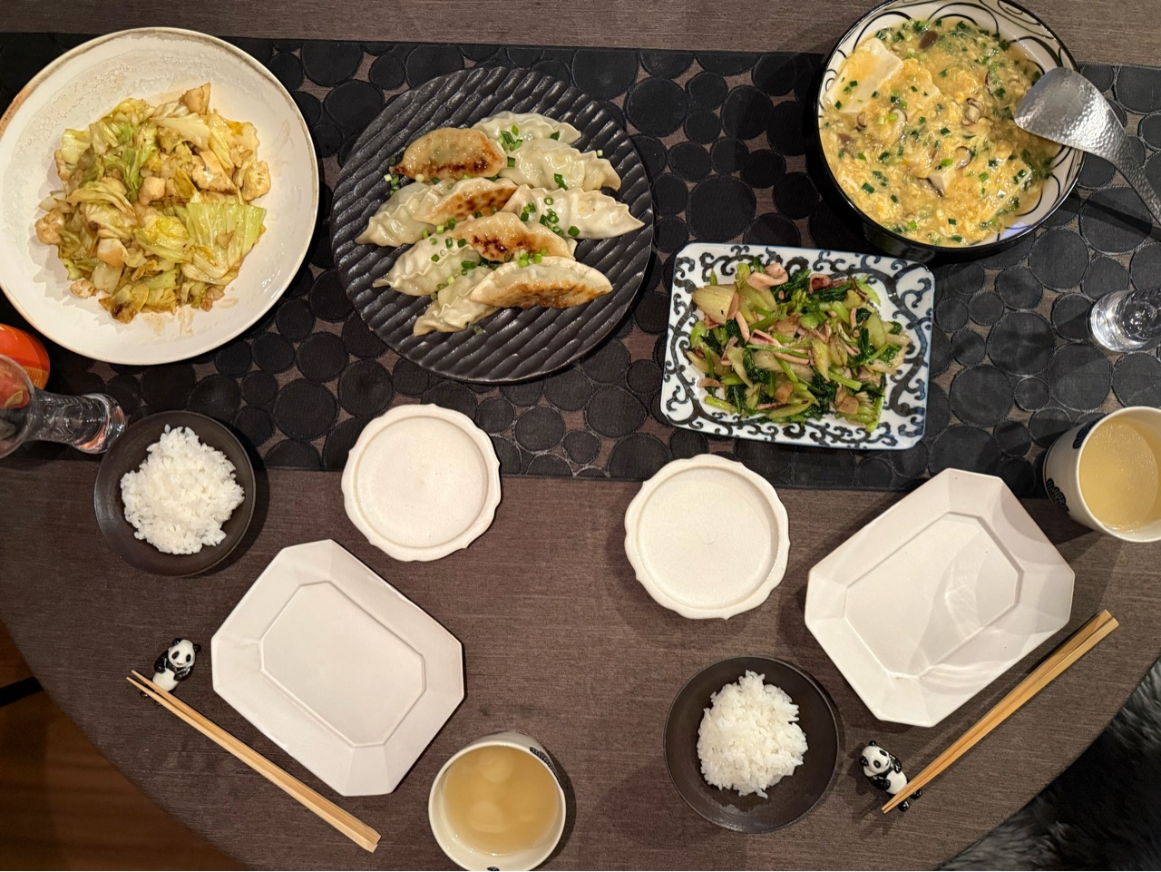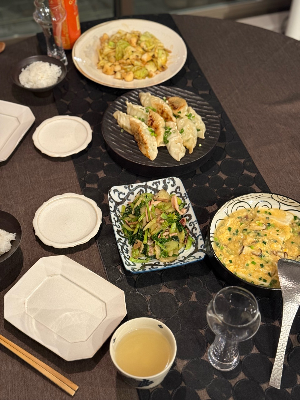 冷凍餃子と炒め物とかを並べました。