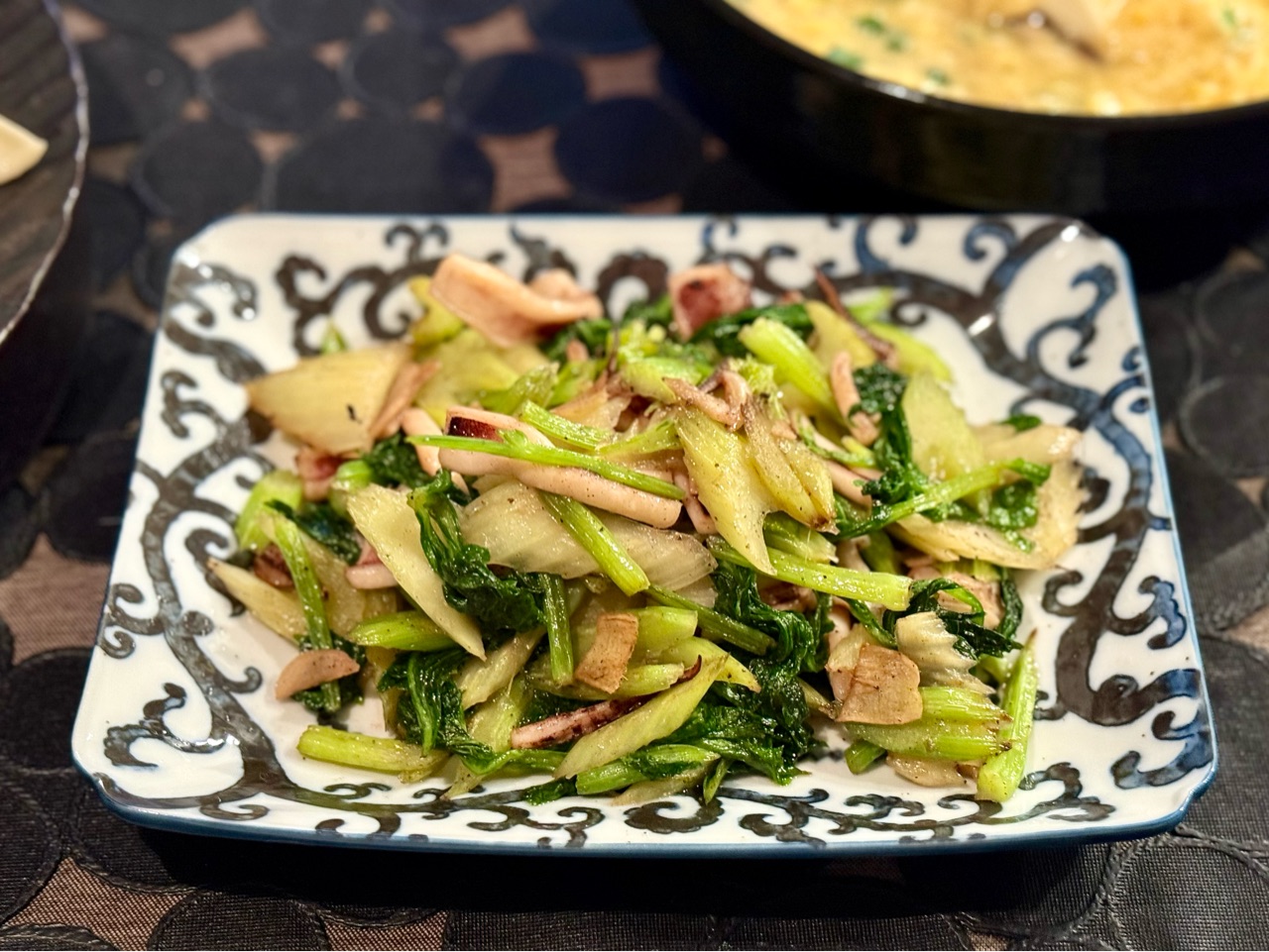 これもだんなさまが作ってくれた、イカとセロリの炒め物。