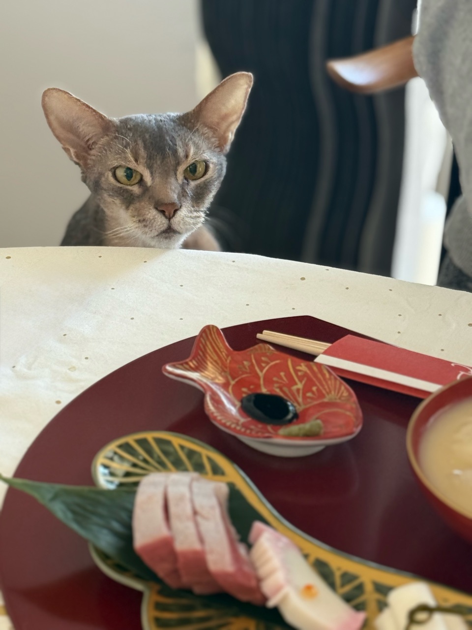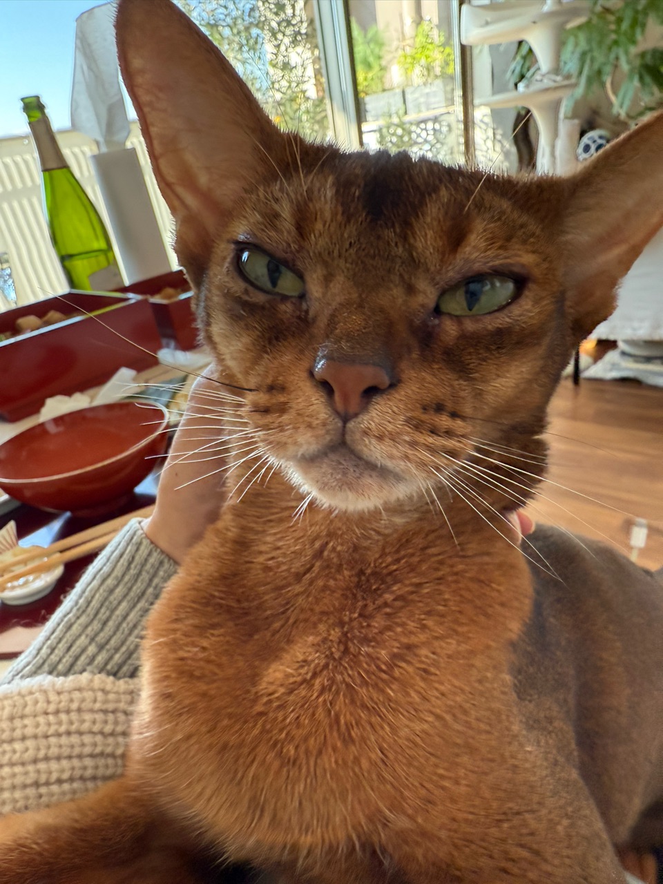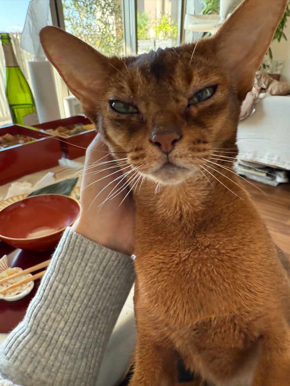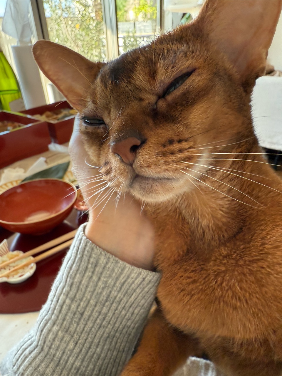 食べ終わる頃、りすが起きて抱っこーとひざに飛び乗って来た。