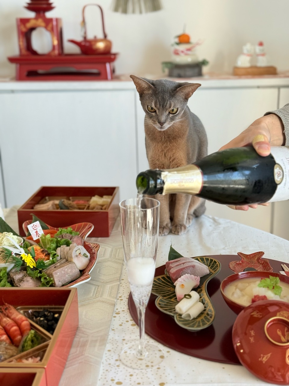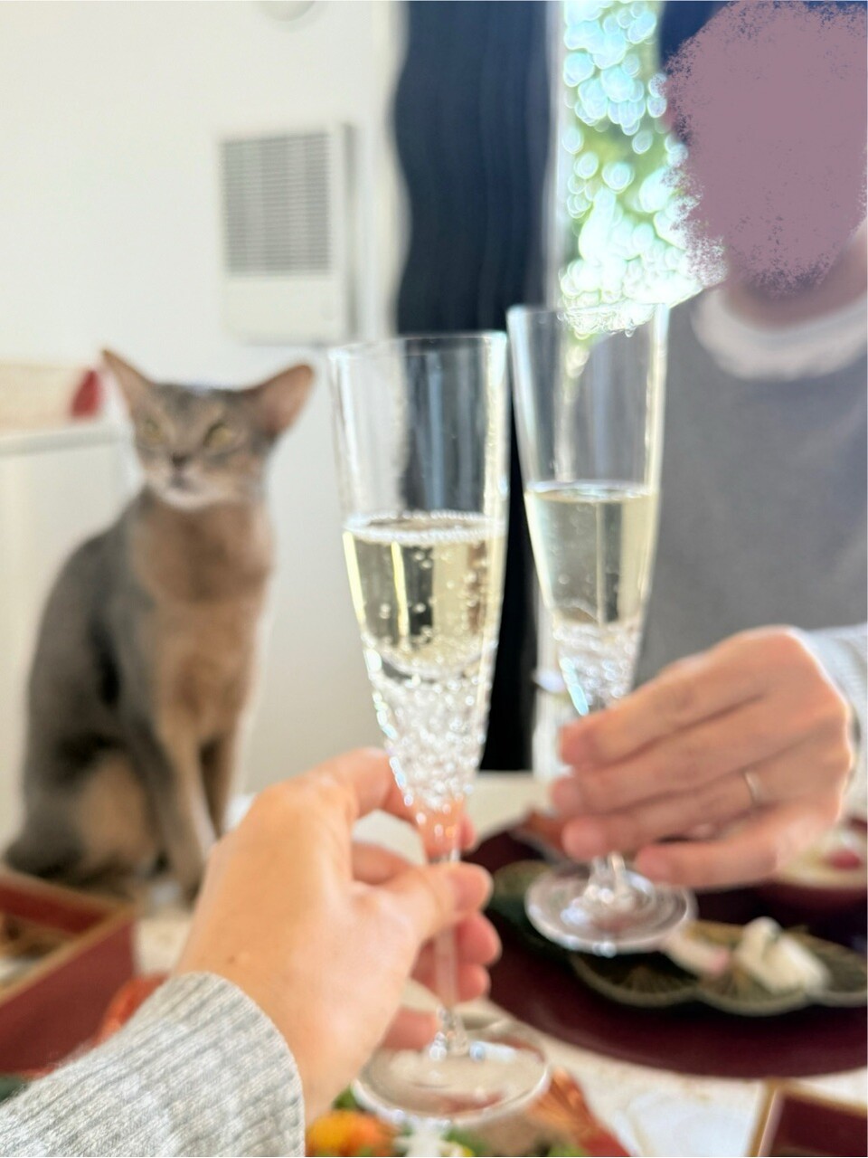 わか坊の視線を浴びたシャンパンで乾杯🥂