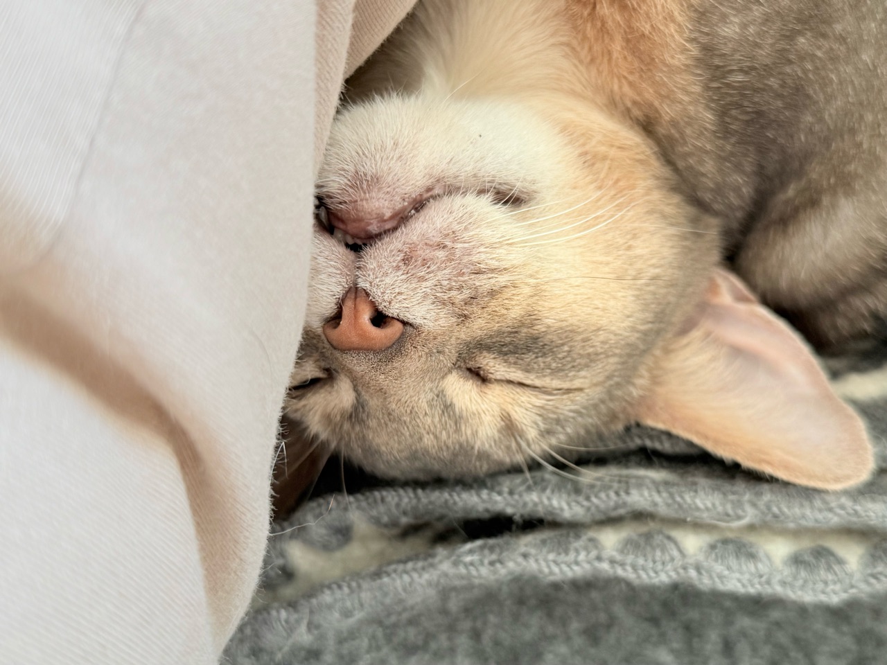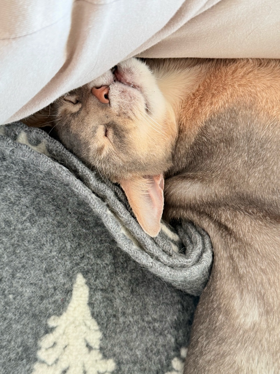 お手手やるんで、頭は毛布に埋もれてた。