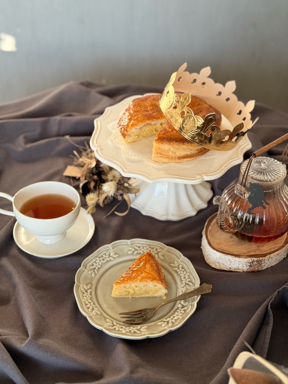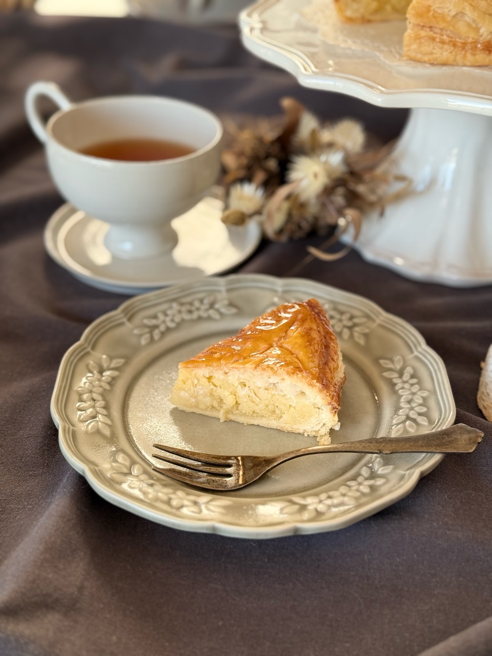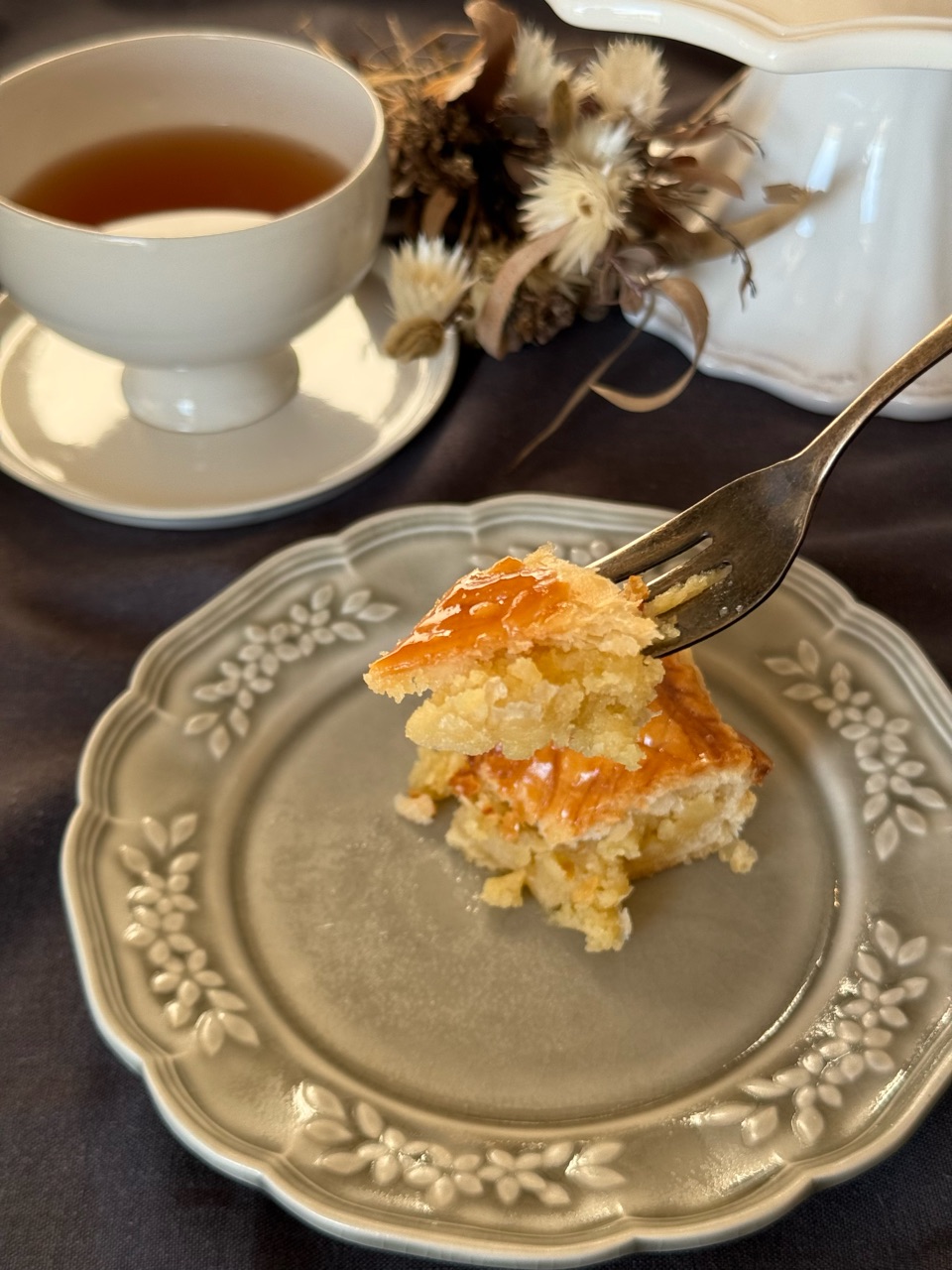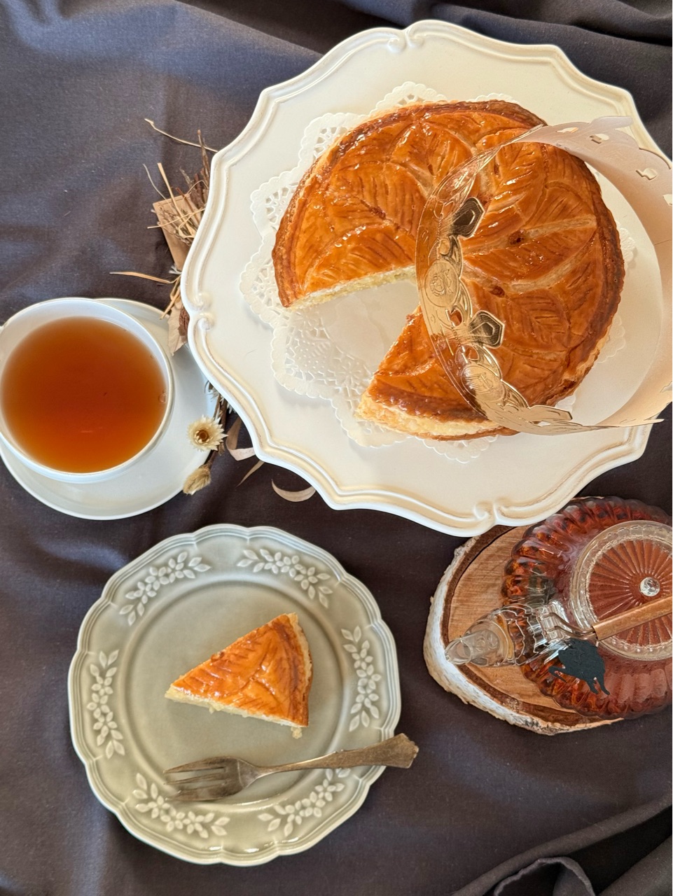 ガレット・デ・ロワは、新年を祝って食べられるフランスの伝統的なお菓子で、サクサクのパイ生地の中にしっとりとしたアーモンドクリームが入ってます。