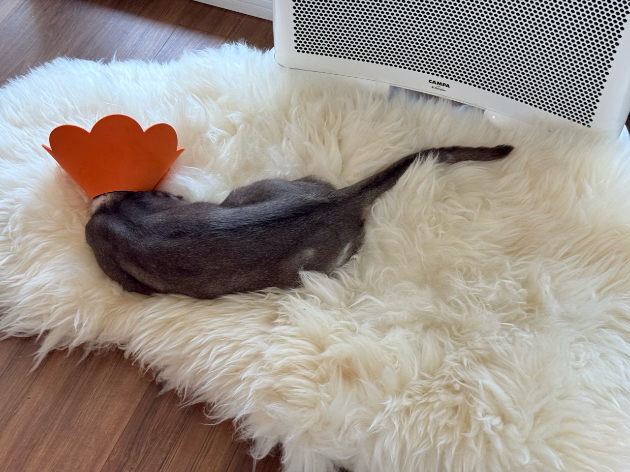 カラーをするとお顔や毛並み、あとお尻のお手入れができないので、飼い主が代わりにすることになります。