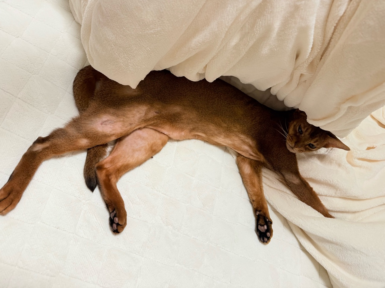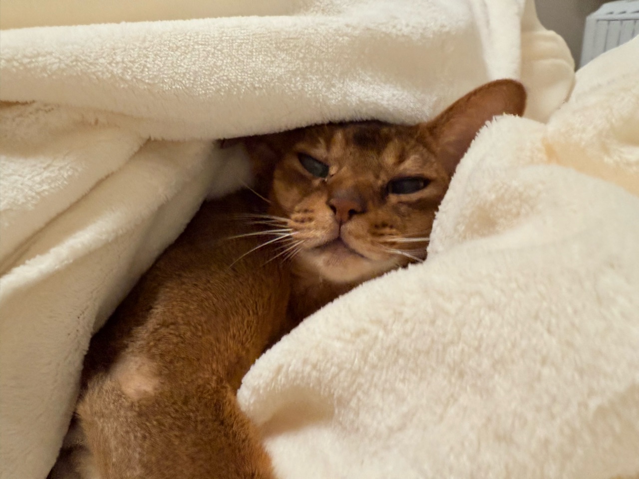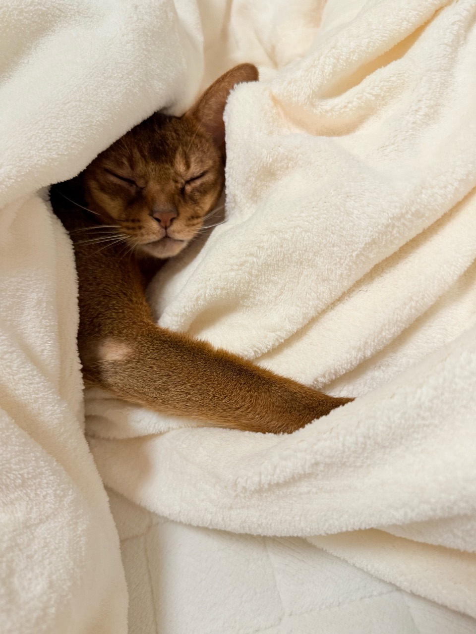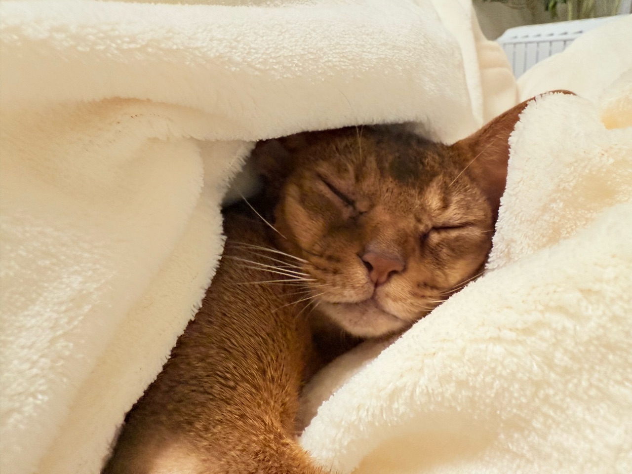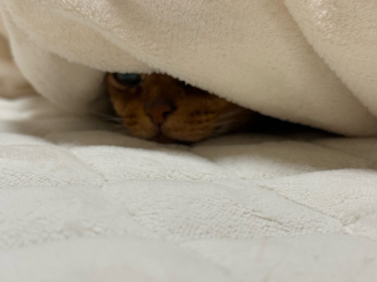 と、心配になって、お水を飲ませたりご飯を食べさせたりトイレに誘ったり一通り猫らしいことをしてもらうのですが、すぐにまた布団に舞い戻りぬくぬくと寝てしまいます。