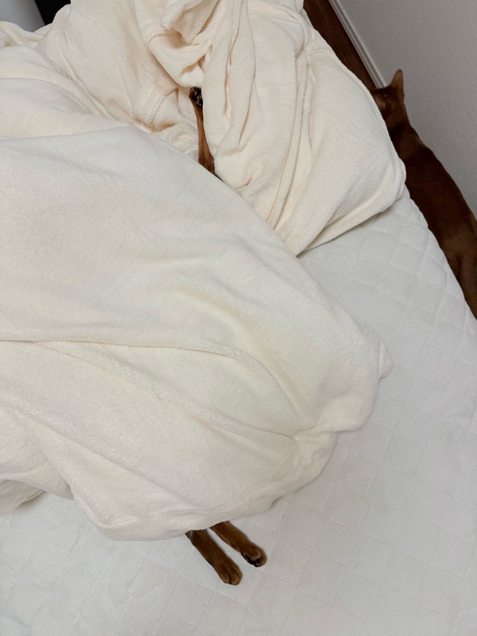 この間、フワフワな布団カバーに変えたら随分と気に入って、ここからなかなか出てきませんでした(๑¯◡¯๑)