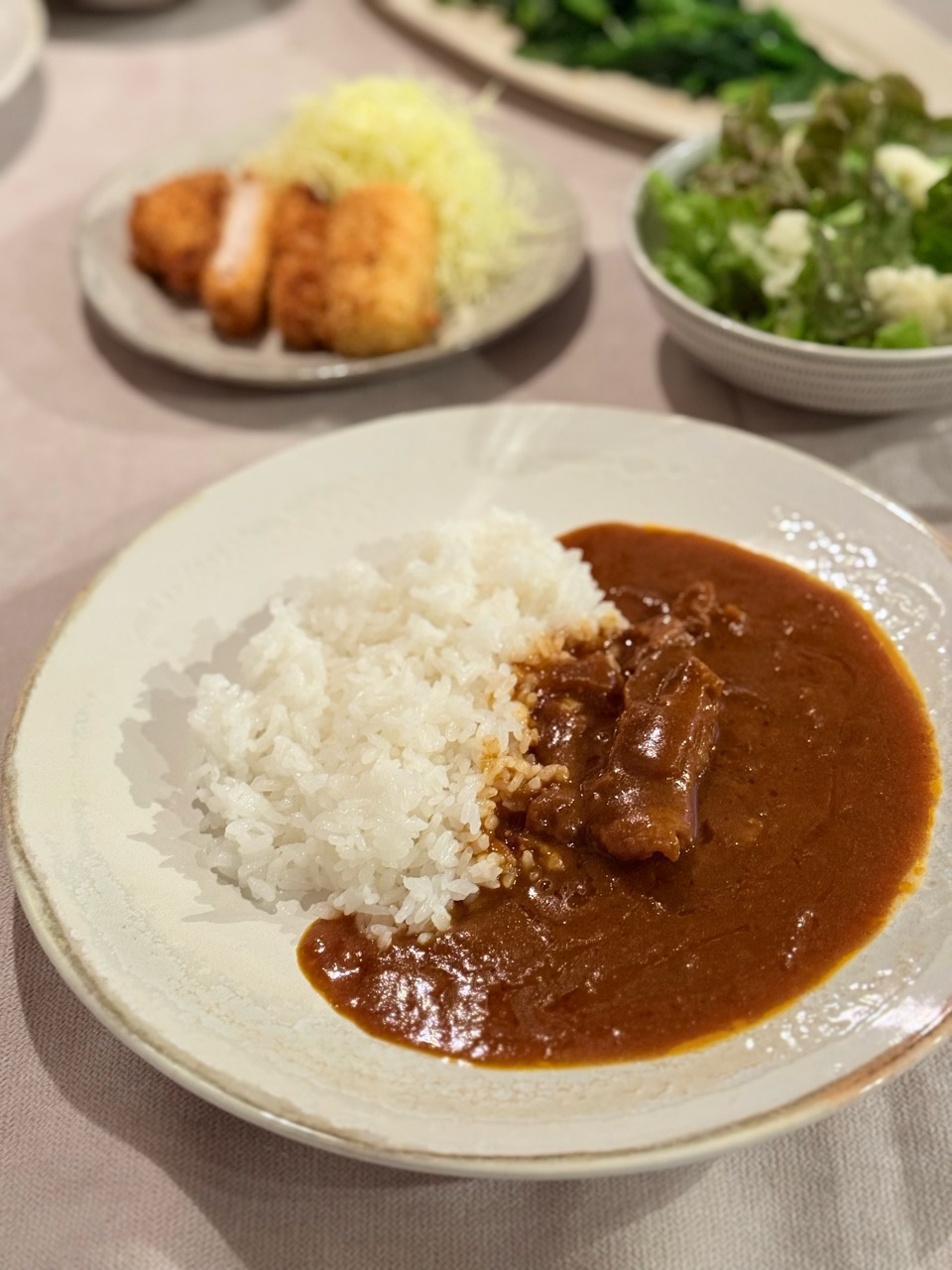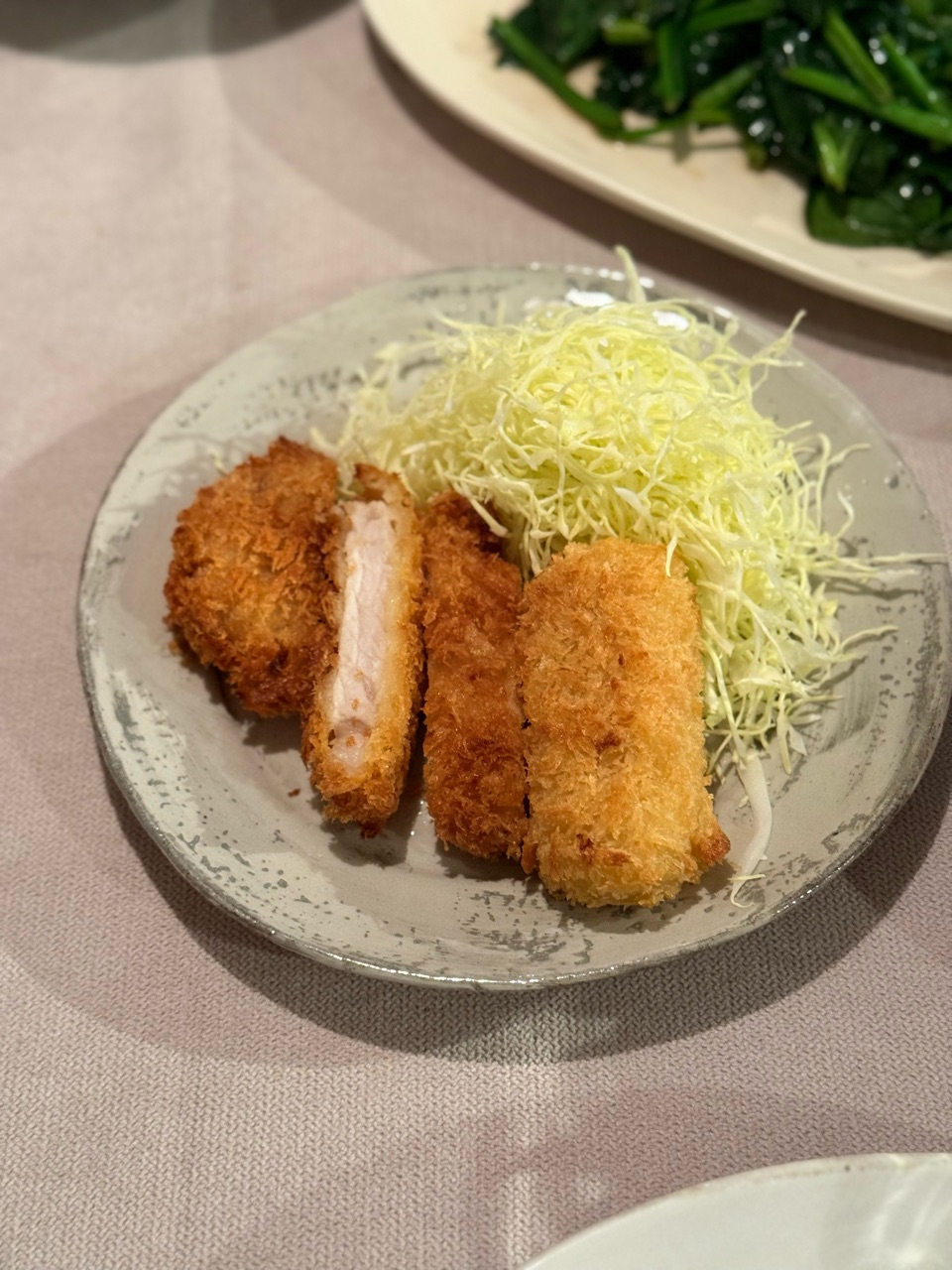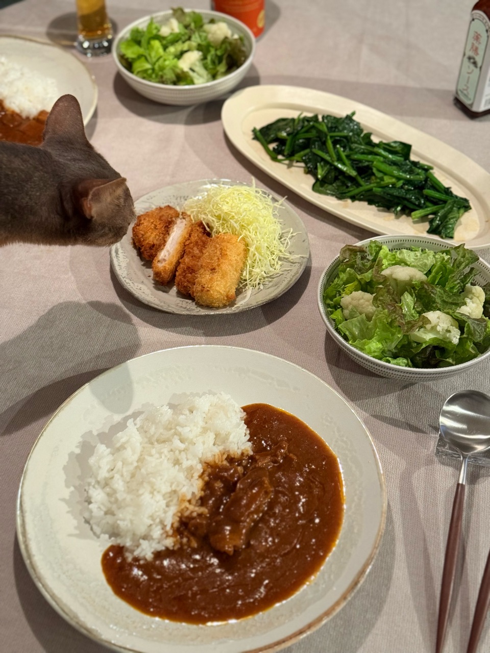 あと、だんなさまが仕事帰りに買ってきてくれたロースカツとクリームコロッケ。
