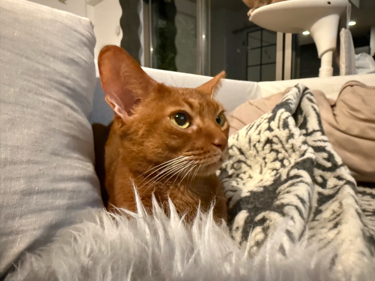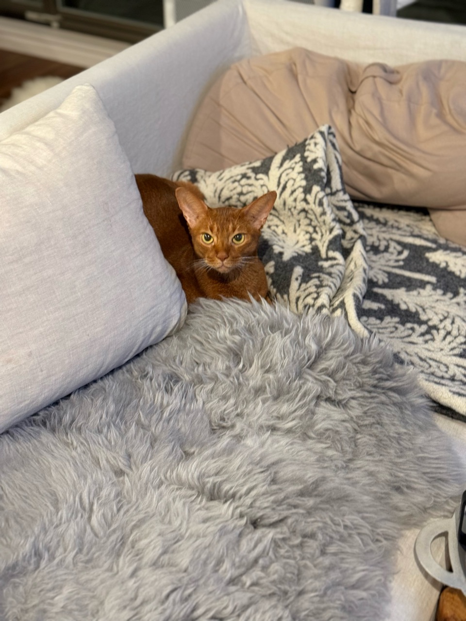 珍しく、ひめちゃんがフワフワの上でくつろいでる?