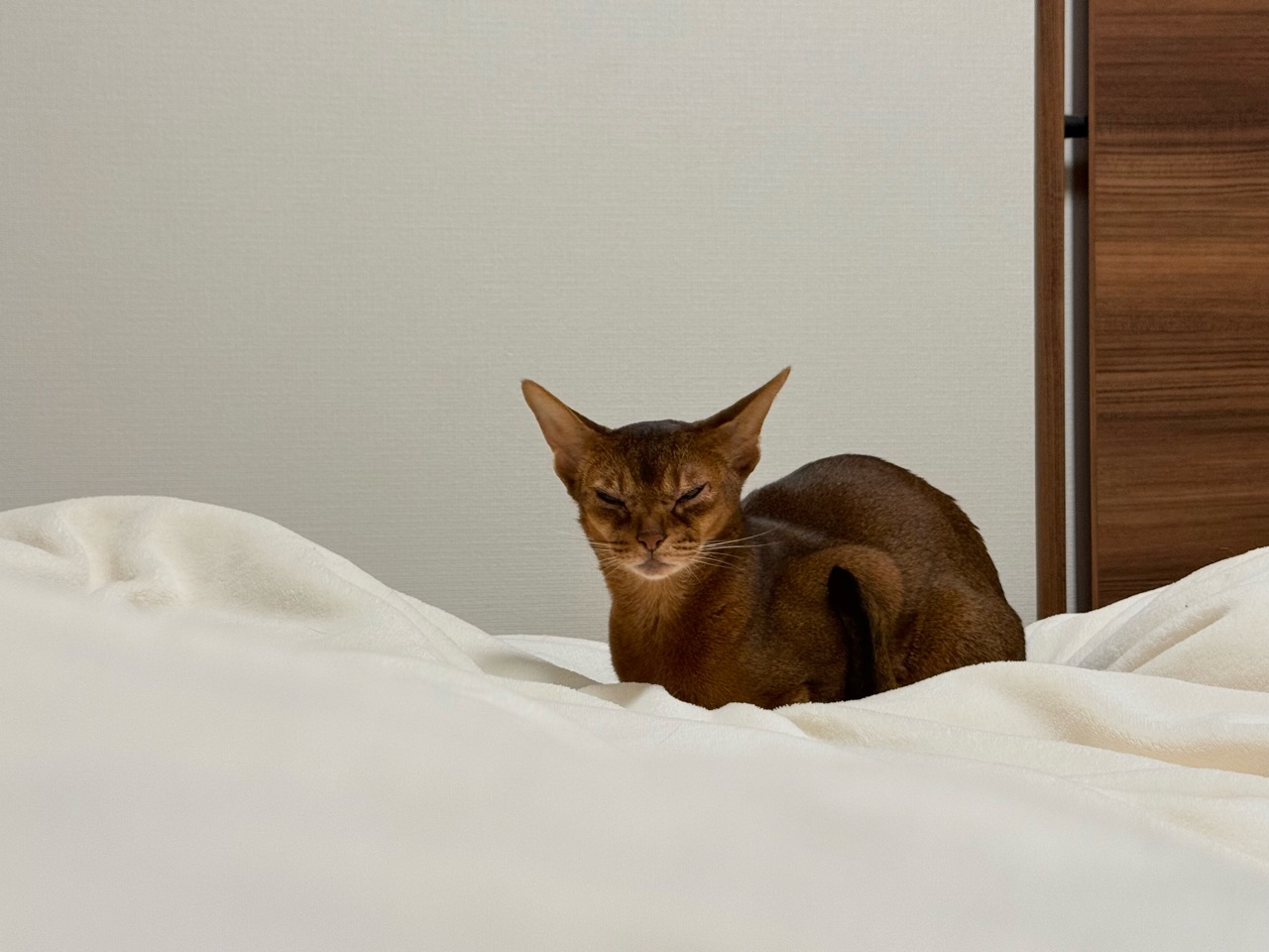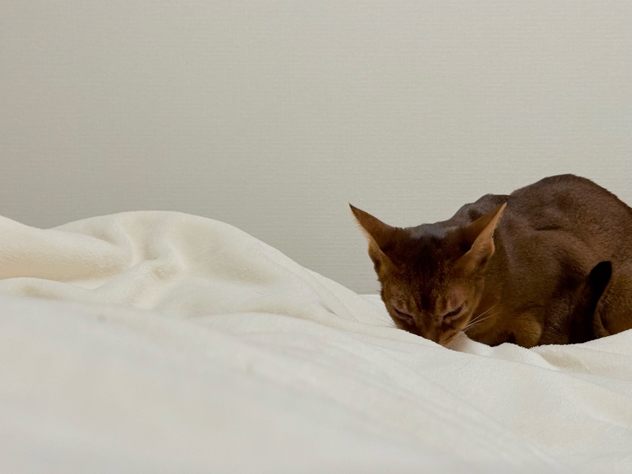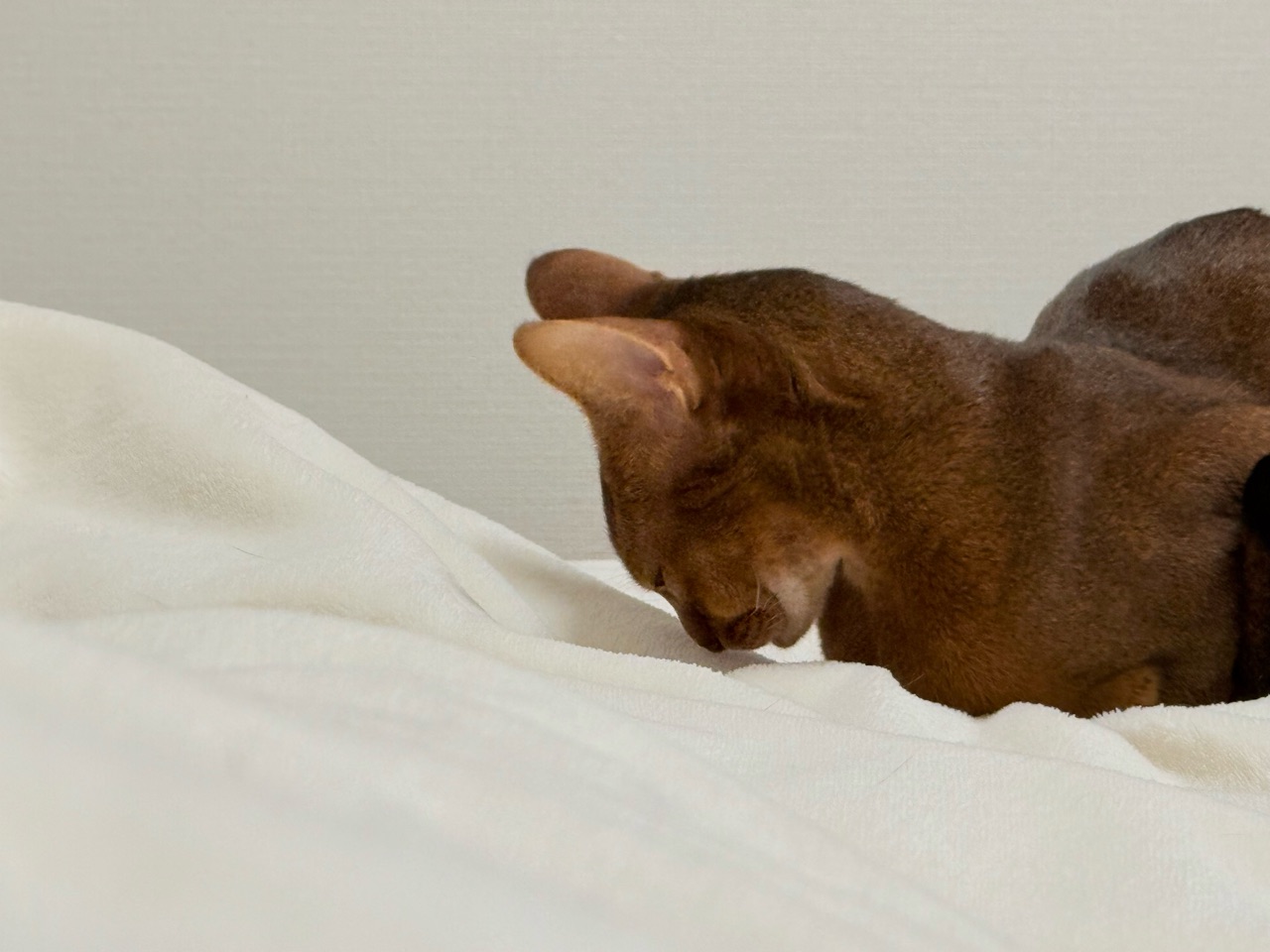 夜、ベッドに入ってさて寝ようと横になると、足元で何やらゴソゴソする猫がいた。