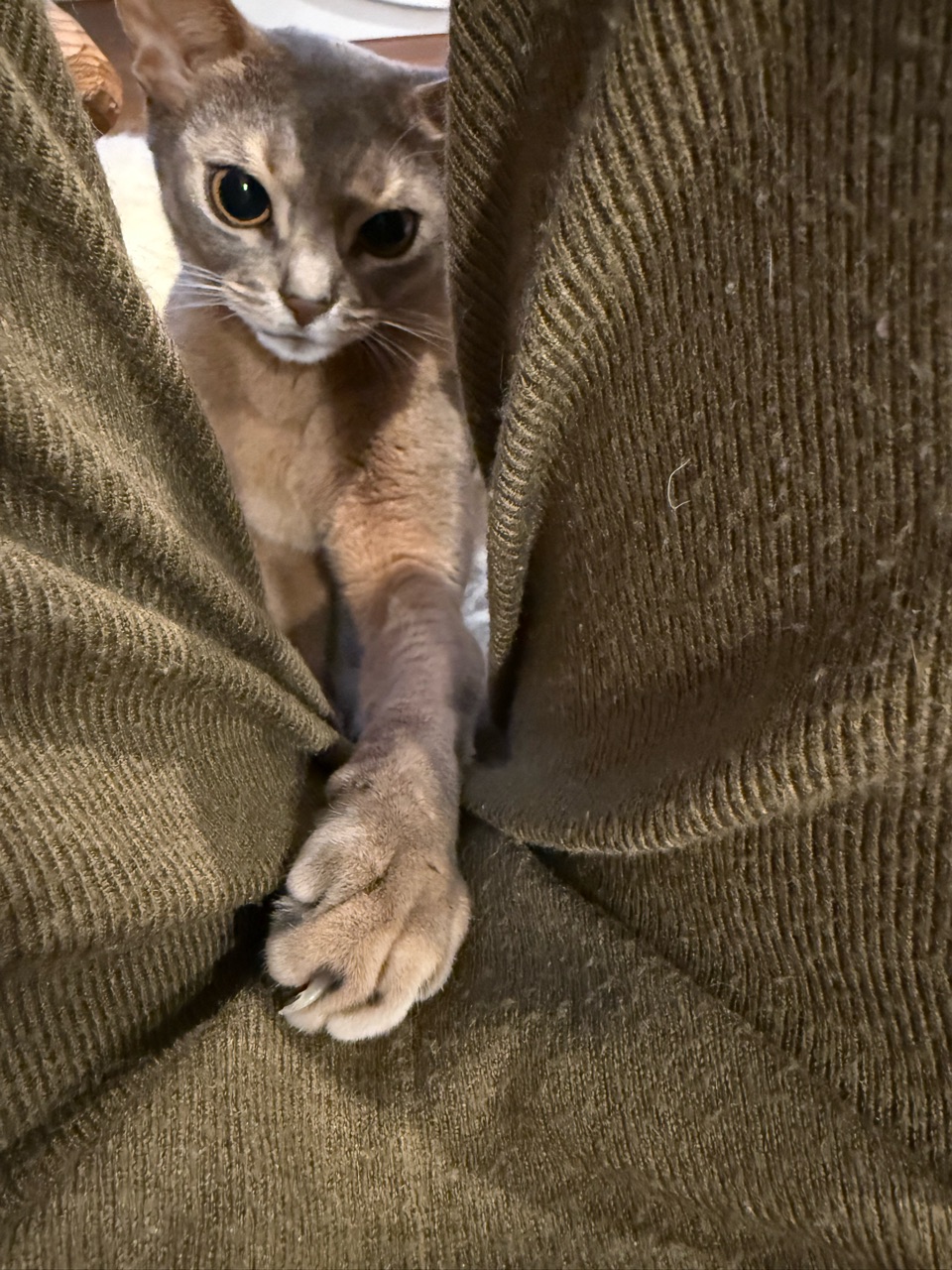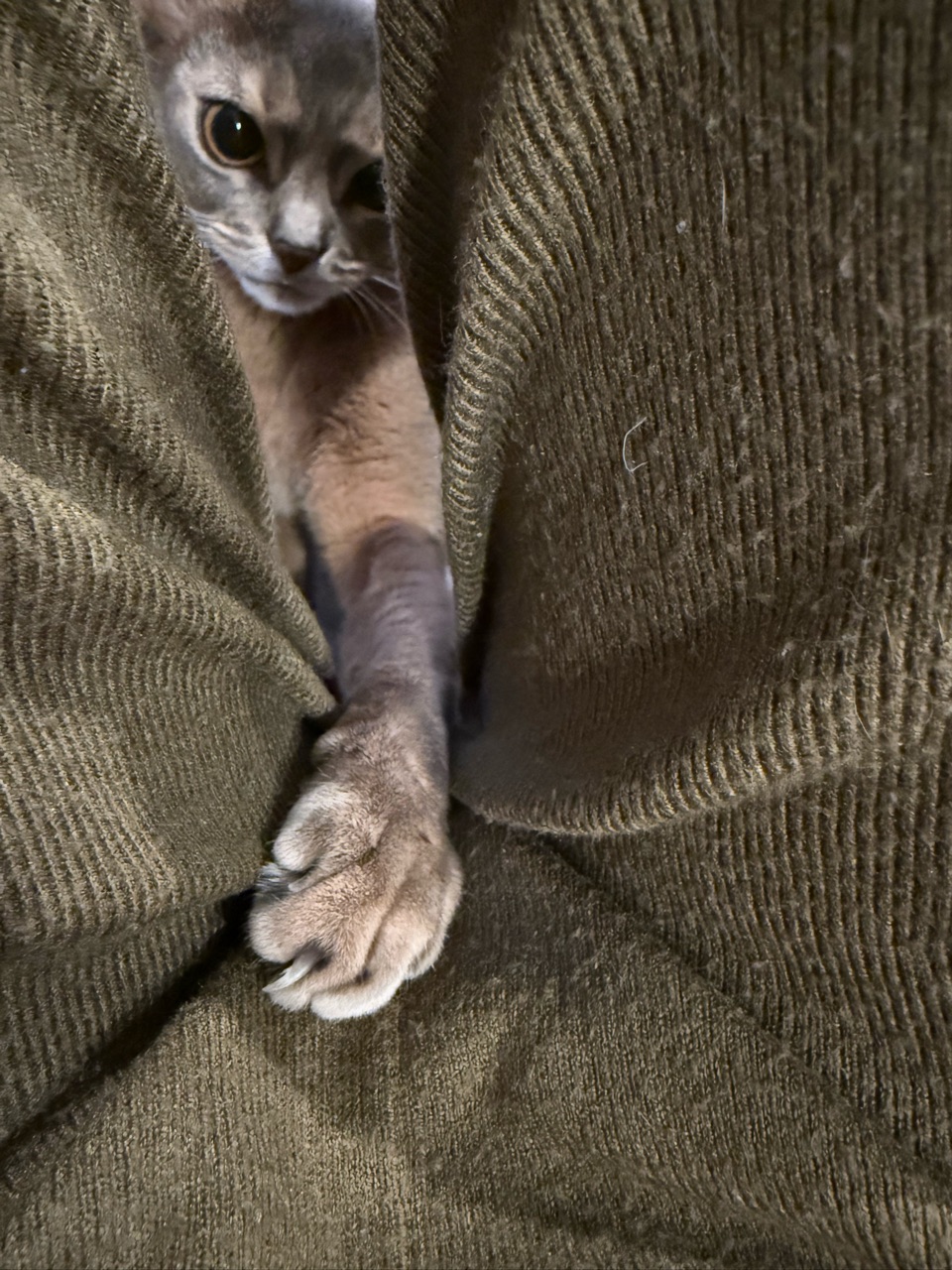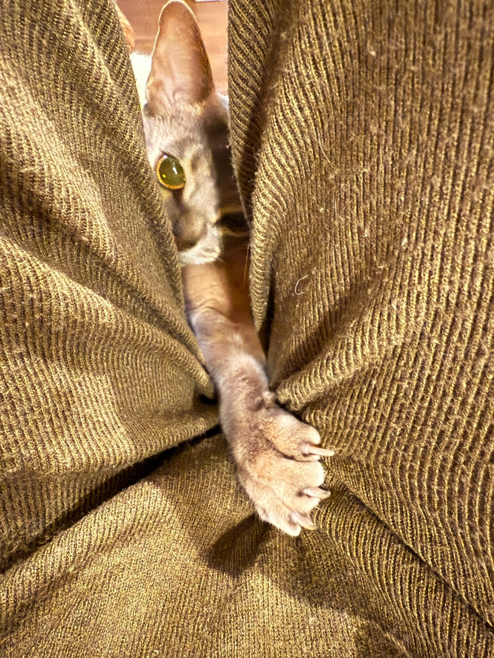 オテテだけでなくお口も覗いてるし🤣隙間の向こうに何か良いものあるように感じるのかな〜✨