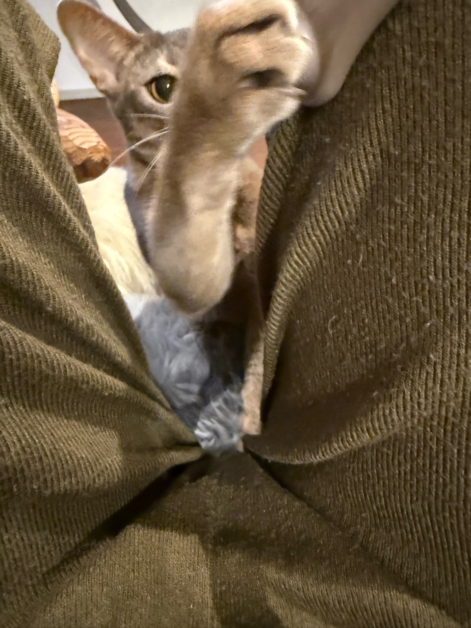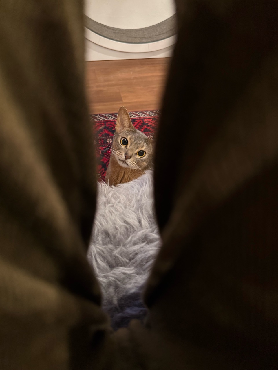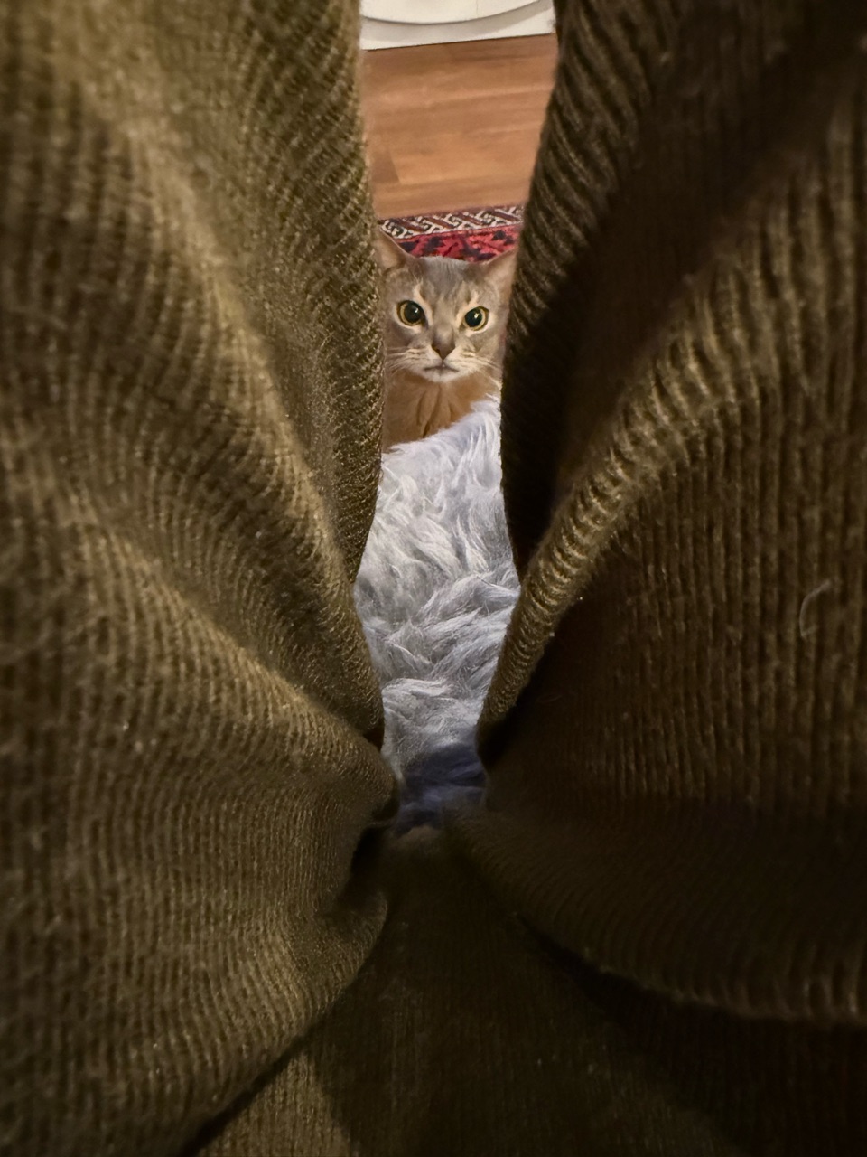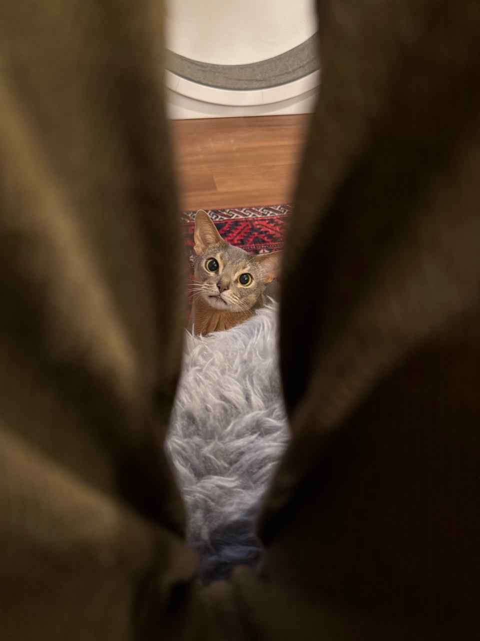 オテテだけでなくお口も覗いてるし🤣隙間の向こうに何か良いものあるように感じるのかな〜✨