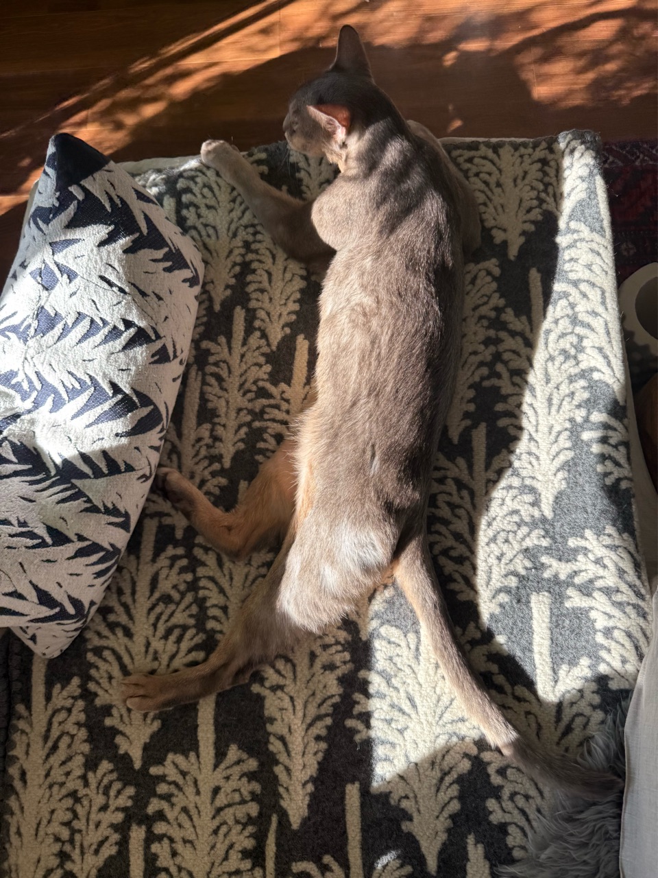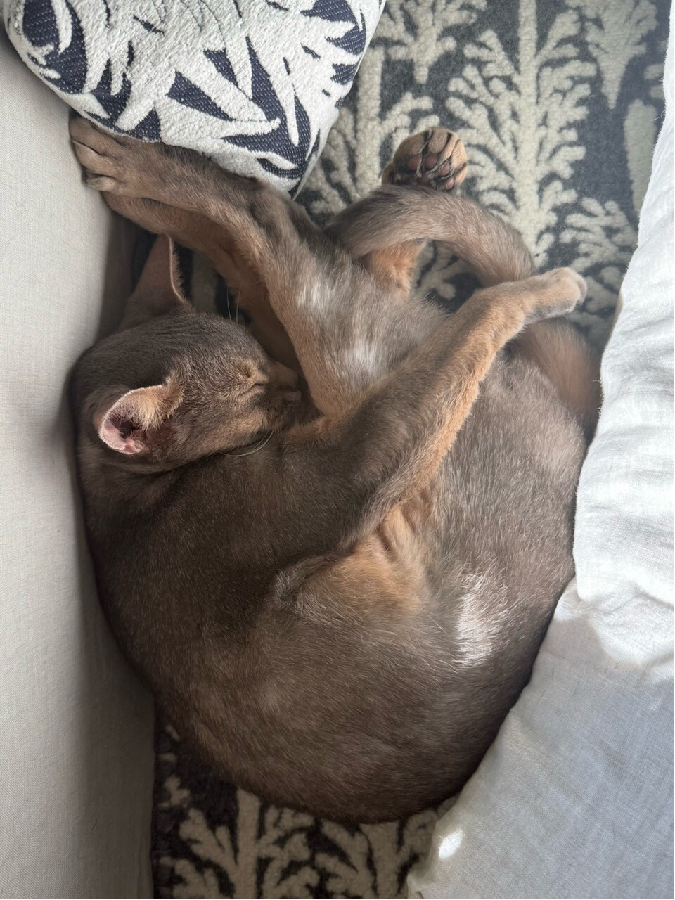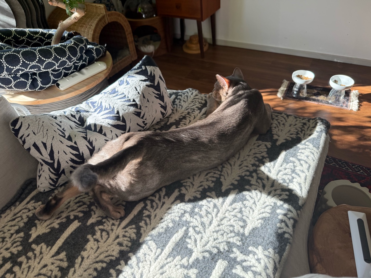 ソファーのお気に入りスペースで、お昼寝中のぼくちん。