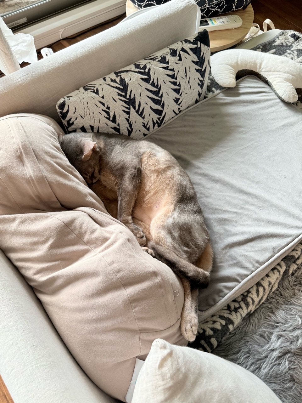 いつも猫っぽい寝相ではないのだけど、こちらもだんだんと麻痺してくる。