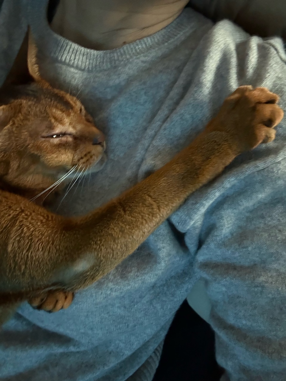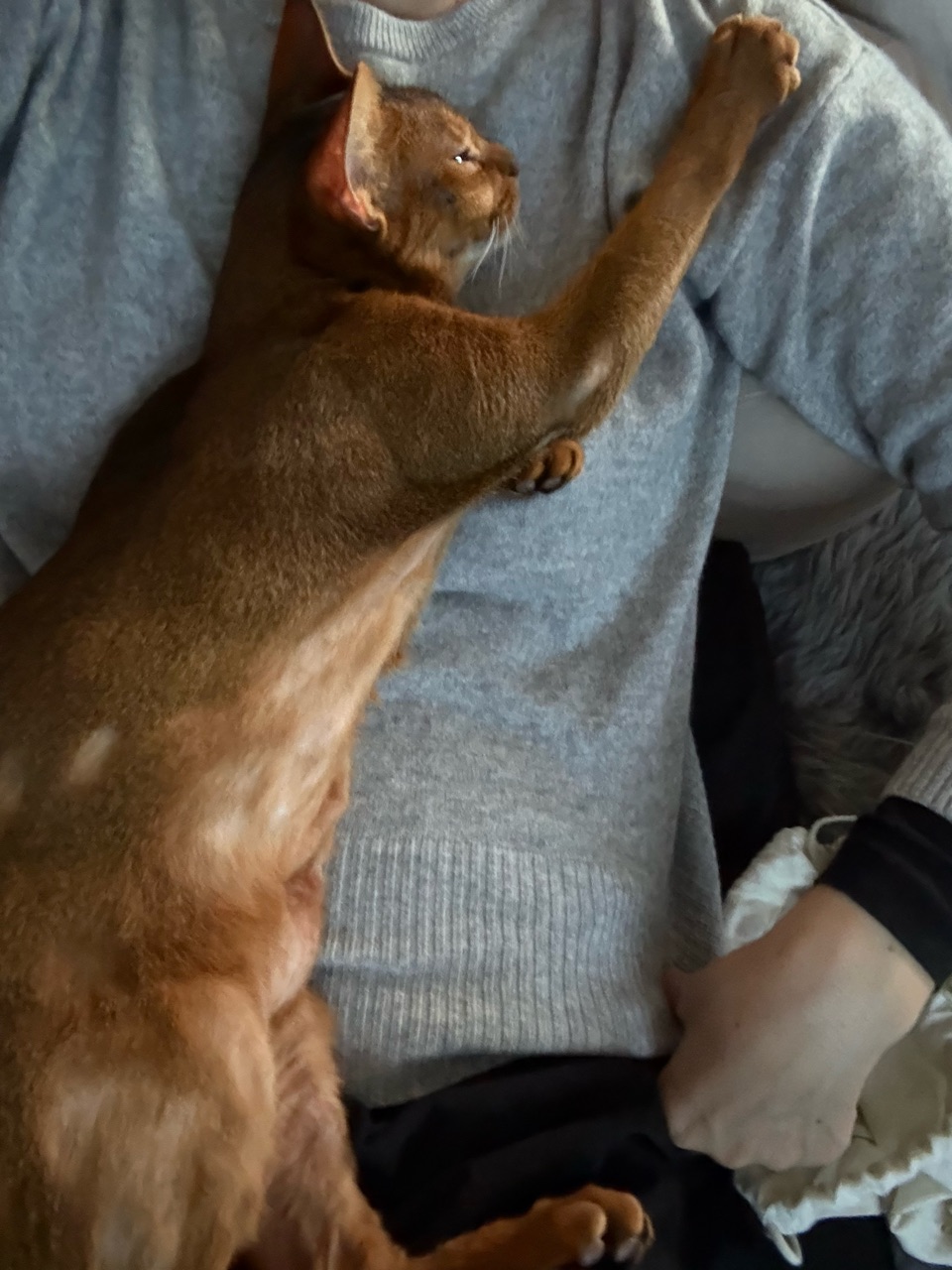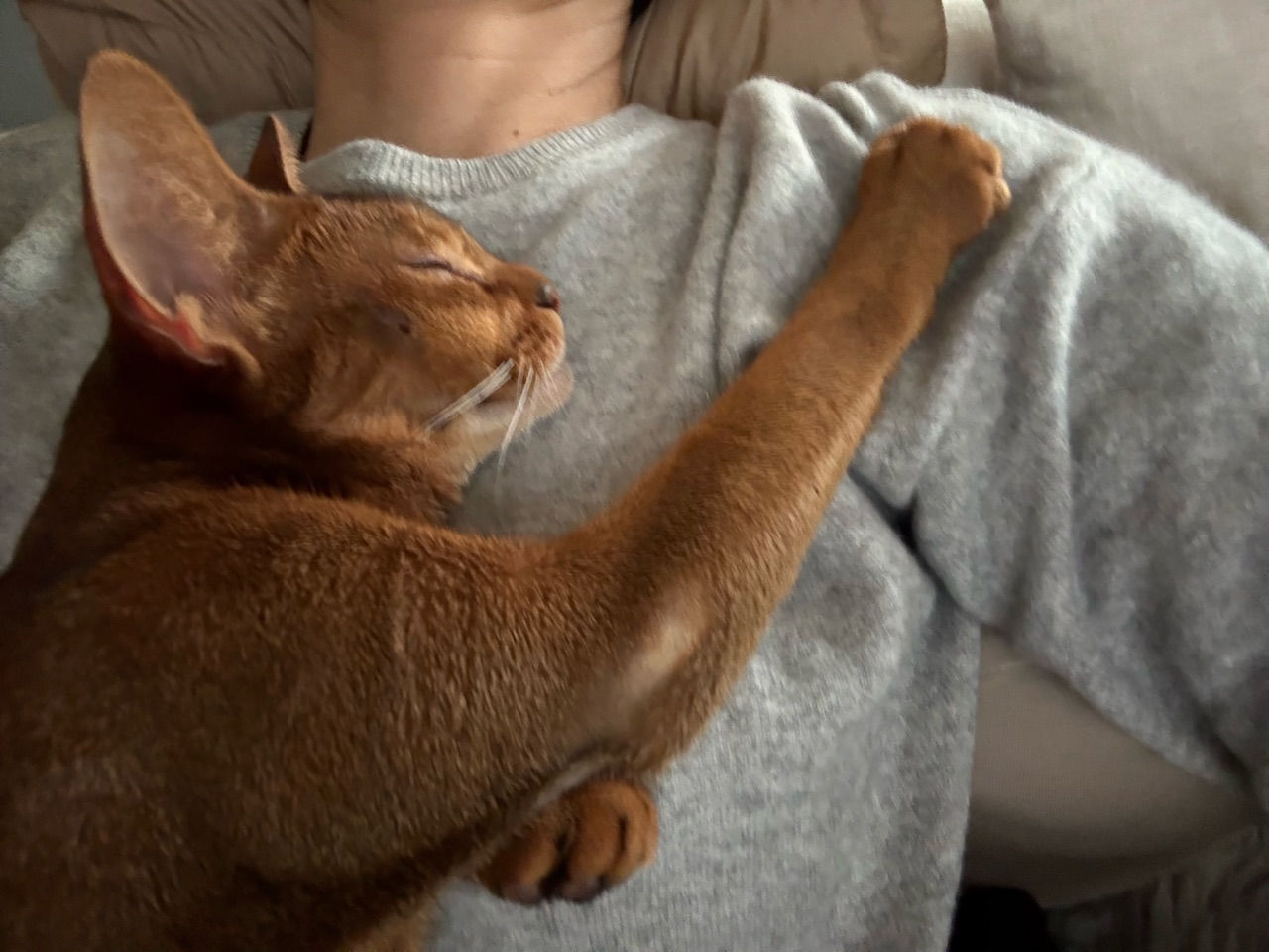 私の場合は、胸の上で香箱座りです