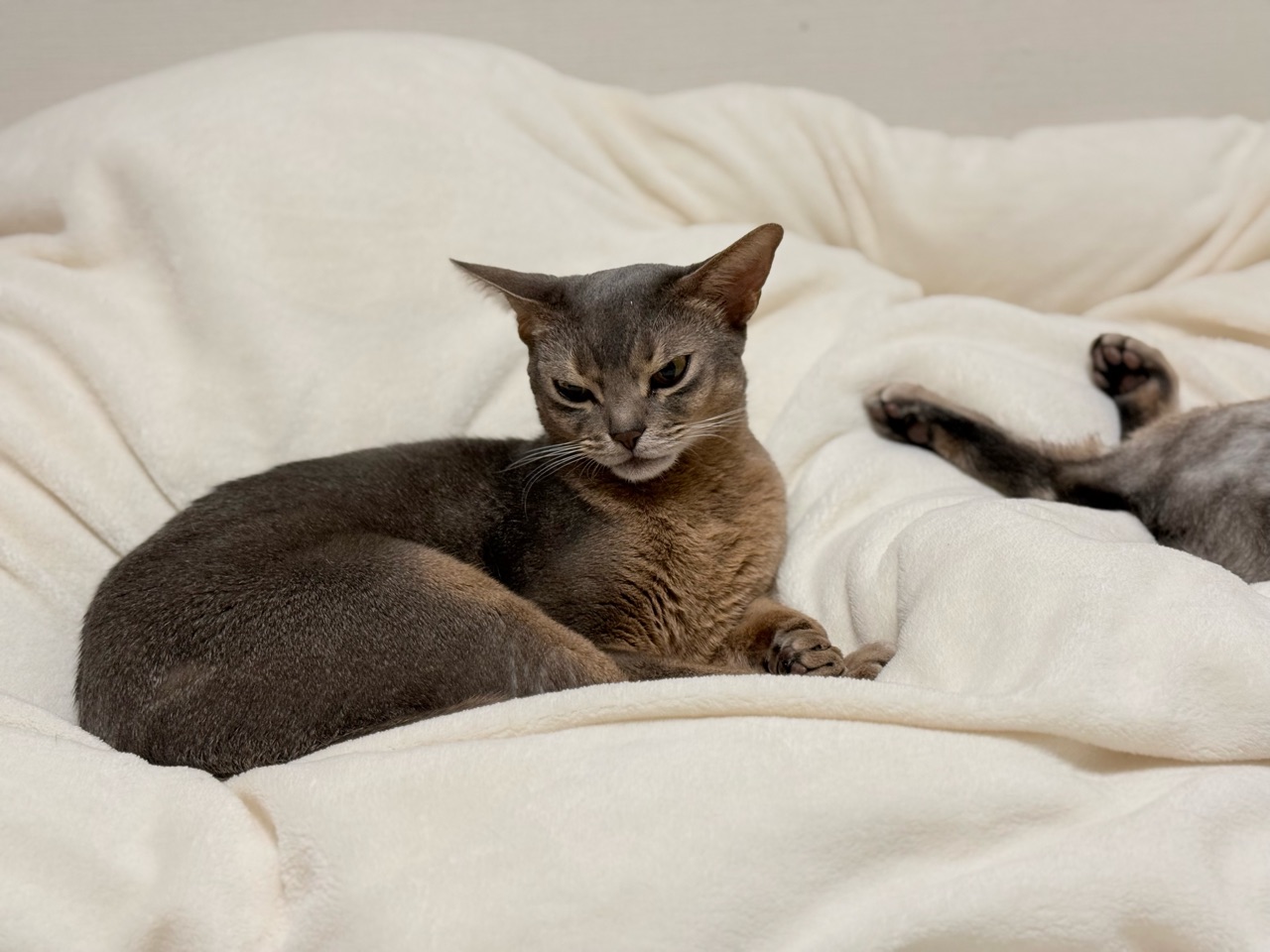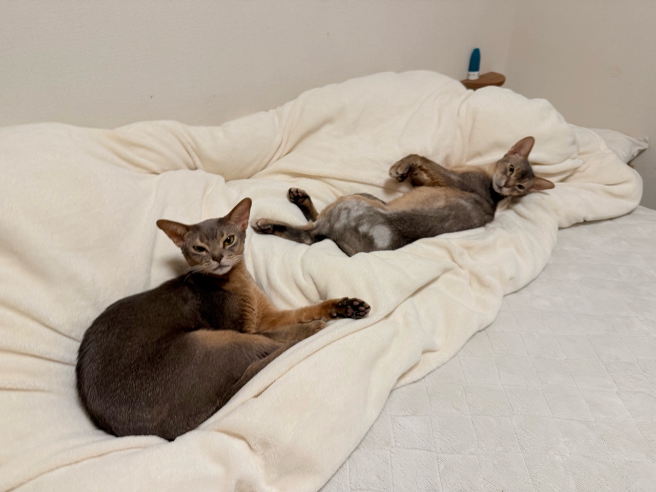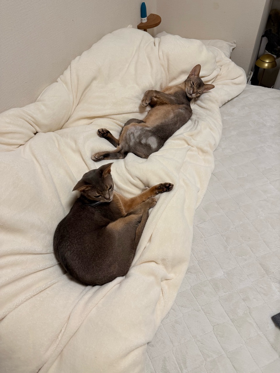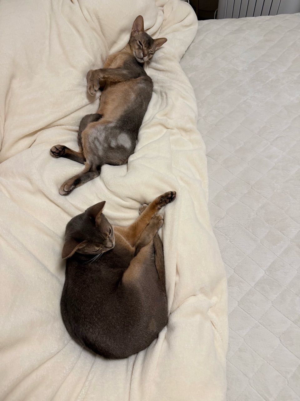 お布団の上に猫の影2つ。