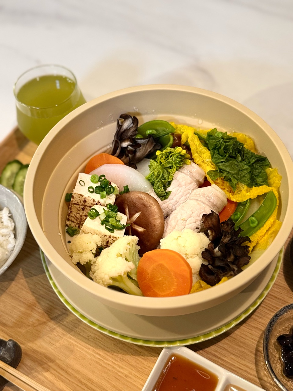 夜ごはんに、1人蒸し鍋をしました。