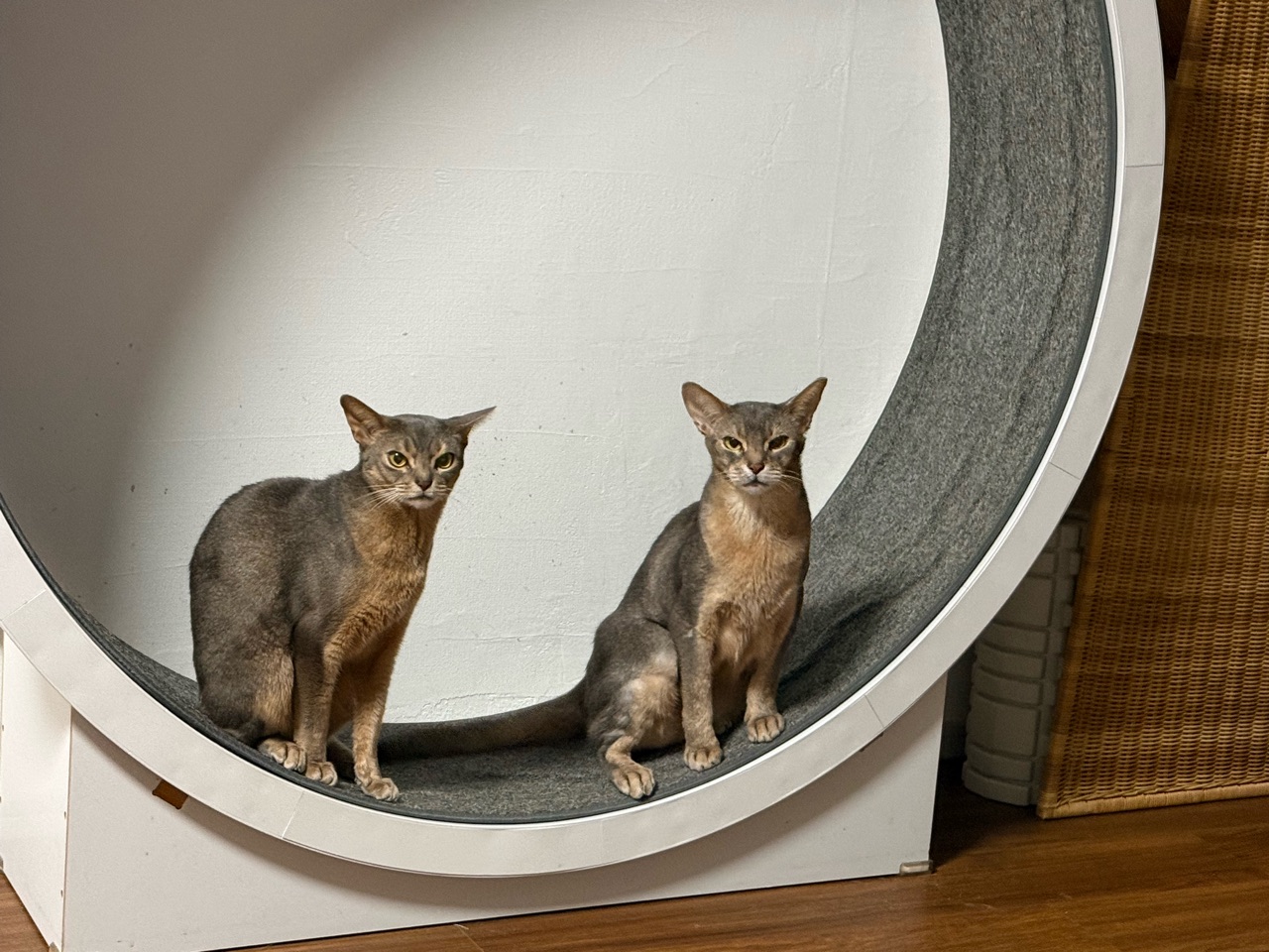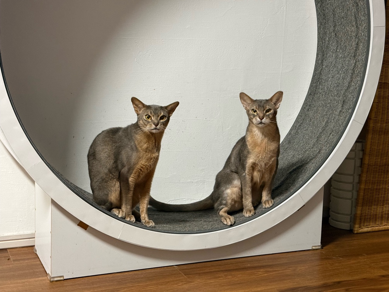 キャットホイールを歩きたいぼくちんと、なんか良く分からんけど…猫にちょっかいを出したいわか坊が一緒に乗ってた。