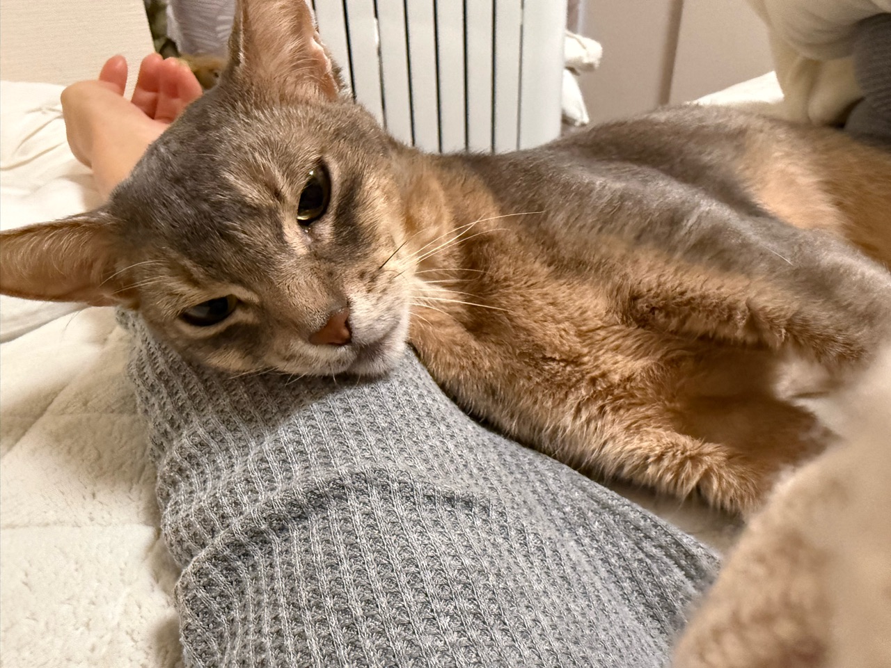 2026年02月13日 午前中をダラダラ過ごした日 土曜日に突然出た蕁麻疹が、なかなか良くならない…߹-߹お薬を飲んだらすぐに良くなるのかなーと思ってたけど、手応えなし( •̄ .̱ •̄ )疲労感が抜けないので、午前中は何もせずダラダラと過ごしてみることにしました。飼い主がベッドでゴロゴロしてるので、猫たちも付き添ってくれてます。ぼくちんを、腕まくらさせてもらってる♡至福〜♡腕の中で、頭グリグリゴロンしてるのかわいい(*´ω`*)はぁ、かわいい♡グリグリーっとして、腕に戻っ遠こっち見てる。ズキューン♡ベッドでゴロゴロしていると、ぼくちんの添い寝特典が付いてきます。起きたくない(๑¯◡¯๑) 「├ との男」カテゴリの最新記事 < 前の記事次の記事 > コメント コメント一覧 (4) 1. みー 2026年02月13日 12:07 蕁麻疹長引いてますね(T . T)ダラダラ過ごすのも良しだと思います。あたしもここ数日風邪なのか花粉なのかなんだか動くのがしんどいです。やる気スイッチ入りません💦 0 jolijolidayo がしました 3. joli!joli 2026年02月13日 20:58 >>1 そろそろ1週間になりますご、なかなか改善しなくてやれやれですー( ߹꒳߹ ) みーさんも、やる気スイッチ入らないのですねー。 そんな時は、きっとカラダを休めるように脳が司令を出しているのかもしれないですね。 無理せず過ごしてくださいね。 0 jolijolidayo がしました 2. 二段階右折 2026年02月13日 20:04 じんましん、辛いですよね。私もひどいじんましんに悩まされています。症状が軽かったときに治しきれず、全身にひろがってしまい夜も寝ることができない状態になってしまいました。 薬が効かないようなら、自分に合う薬が見つかるまで根気良く皮膚科に通うのが良いようです。 慢性化すると本当に大変です。 早く良くなりますように…。 0 jolijolidayo がしました 4. joli!joli 2026年02月13日 21:01 >>2 わぁ、アドバイスありがとうございます。 根気よく皮膚科に通うことも大切なんですね。 合うお薬を見つけたいです。 慢性化しないよう、キチンも向き合います。 二段階右折さんも、蕁麻疹が良くなりますように。 名前がおもしろいですね(๑¯◡¯๑) 0 jolijolidayo がしました コメントフォーム 名前 コメント 記事の評価 リセット リセット 顔 星 情報を記憶 コメントを投稿する