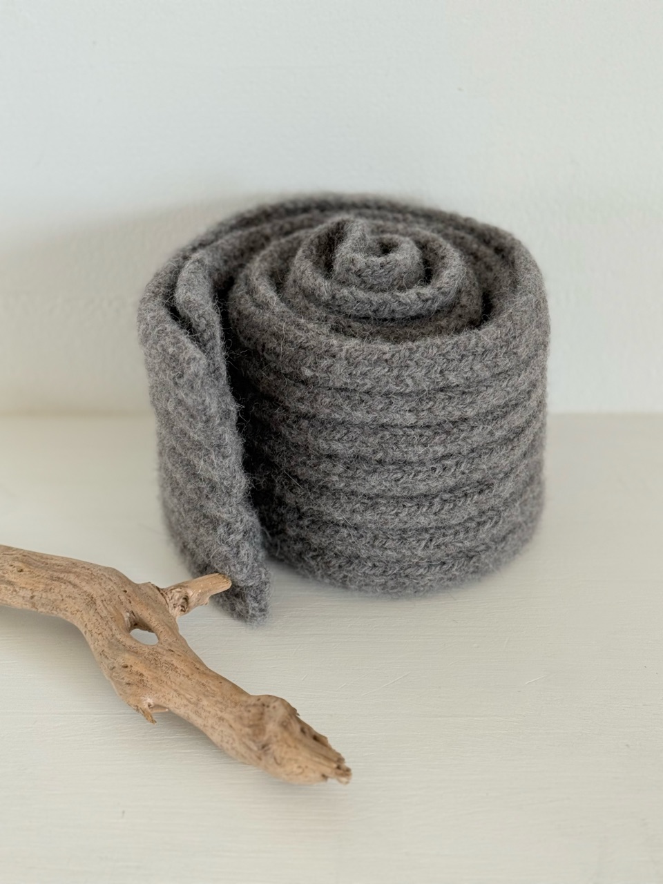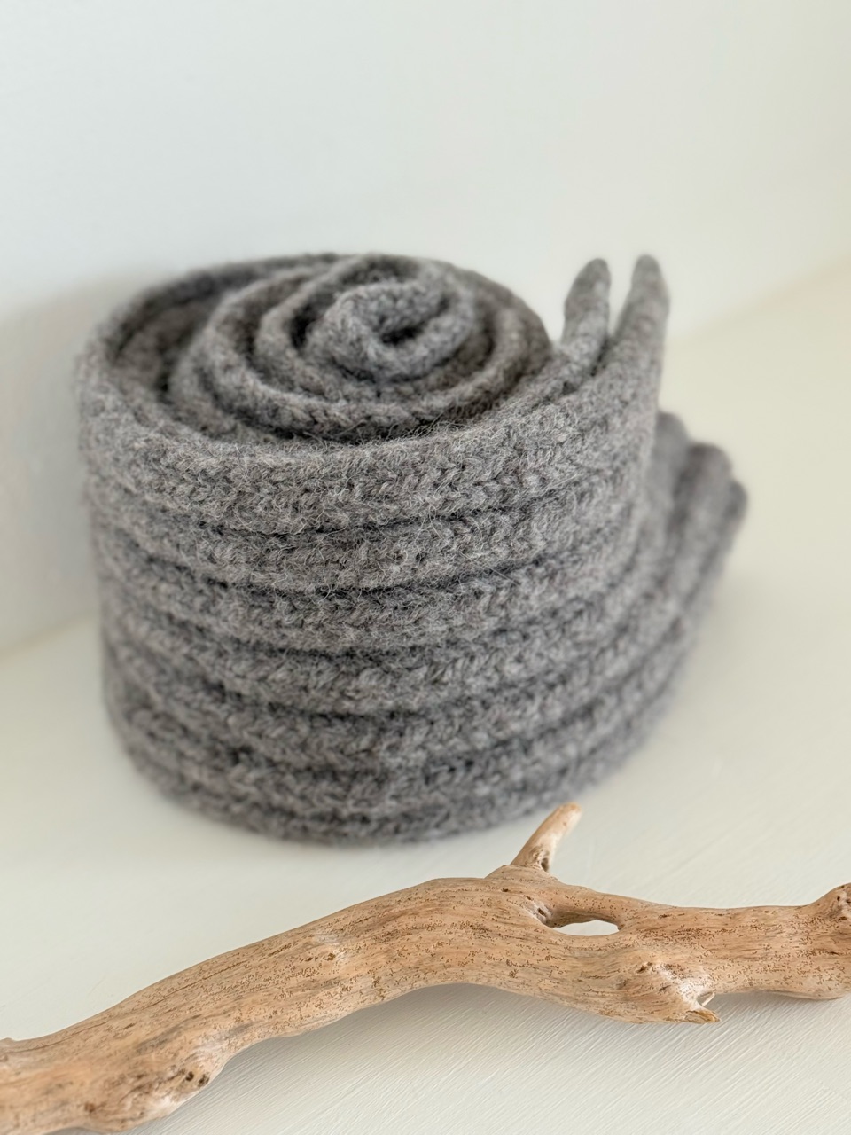 二目ゴム編みをひたすら長く編むだけの単純なのだけも、これが使いやすいそうです。